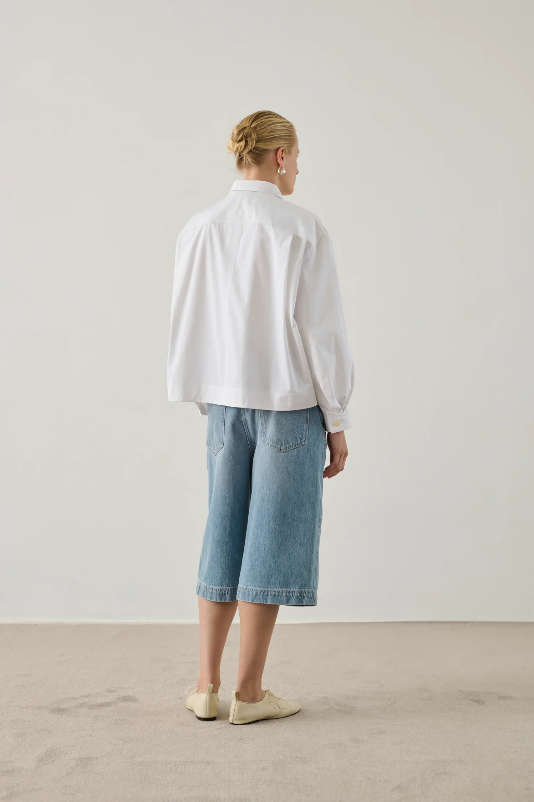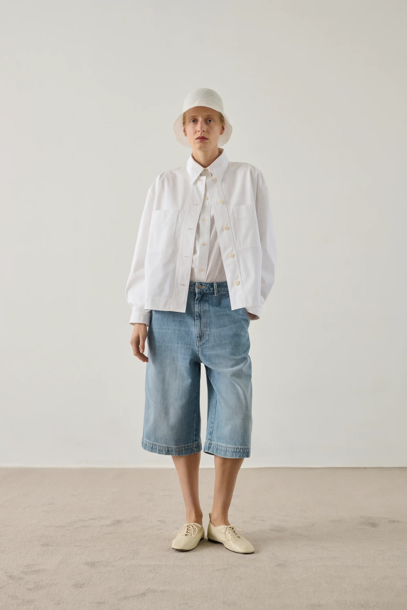 – Coupe oversize – Longueur en dessous des genoux – Boutonnage et zip braguette – Deux poches devant et dos – Patch en cuir au dos