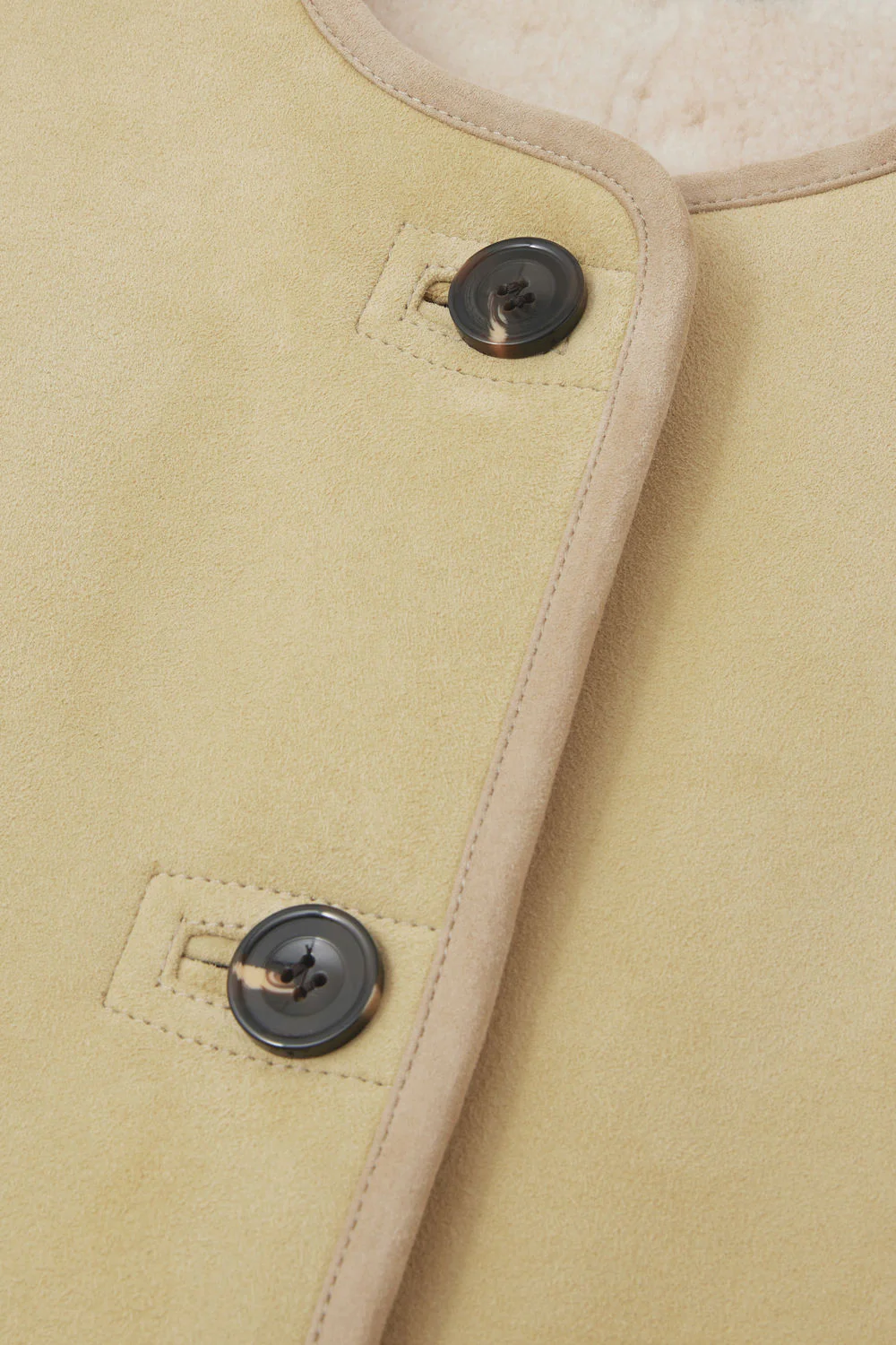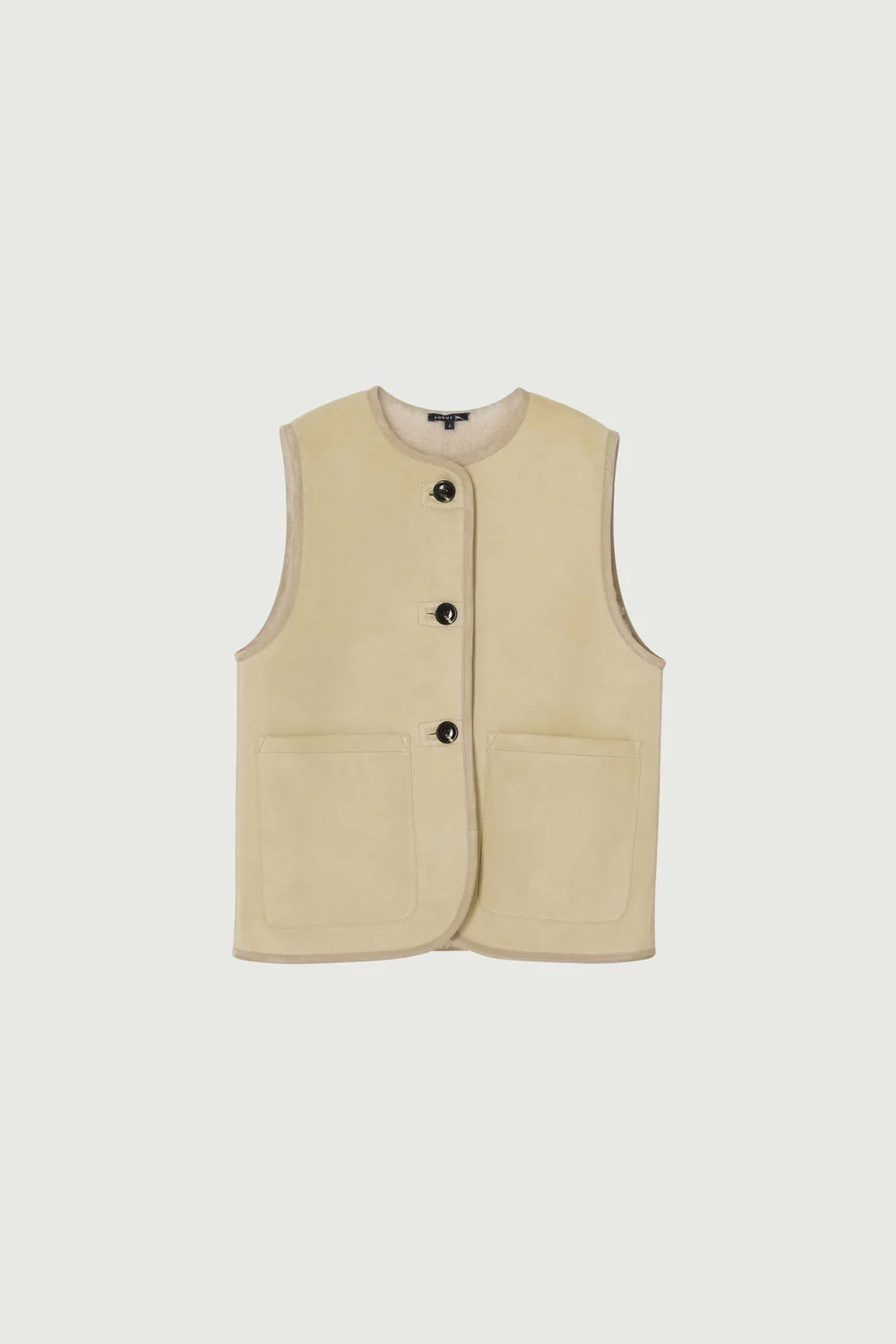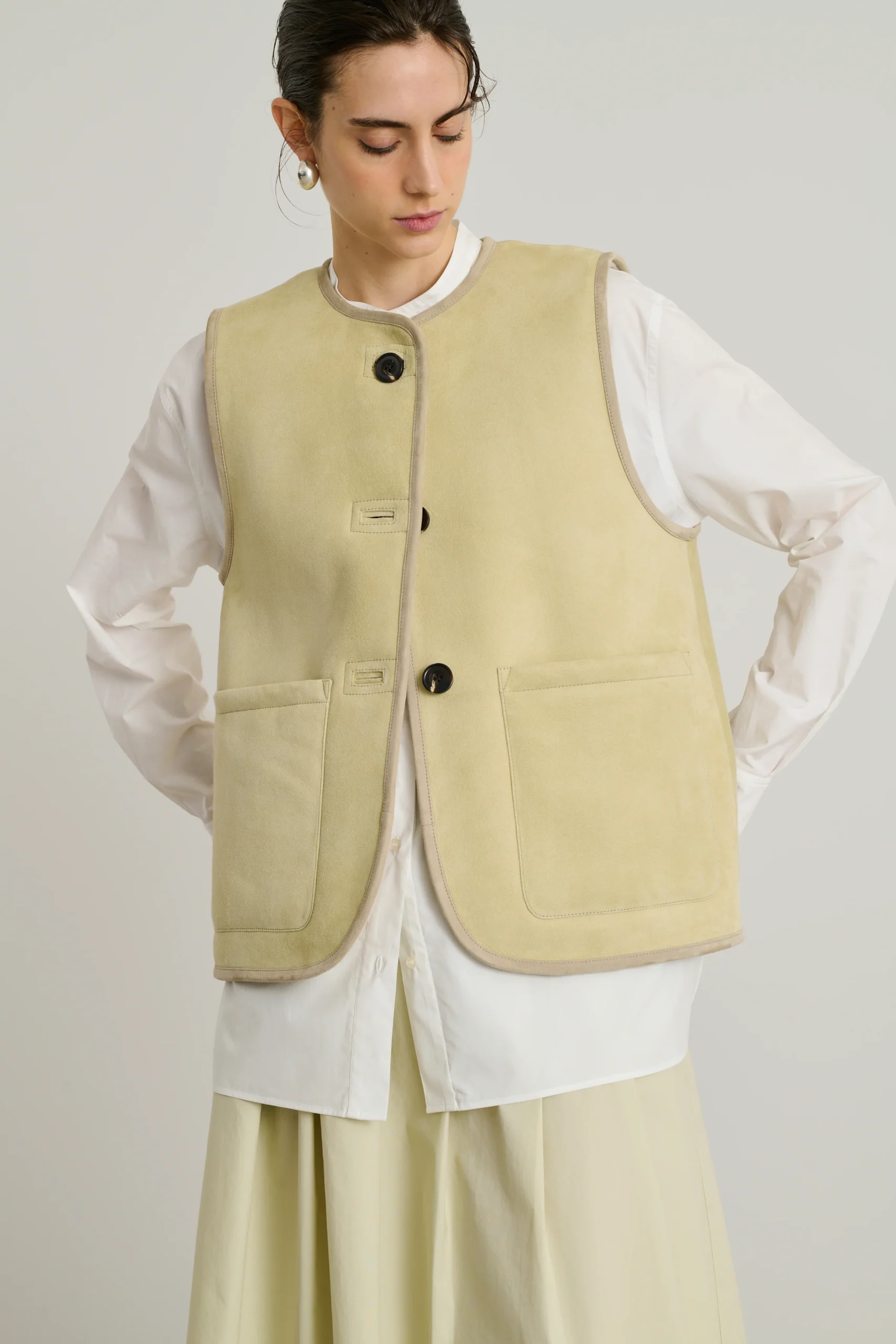 DUOMO est un gilet sans manches en cuir d’agneau parfait pour jouer les superpositions. Sa coupe est oversize, sa peau lainée à l’intérieur bouclettes est dense et chaud, coupé de deux poches sur le devant qui ajoutent une dimension pratique. Il peut se glisser sous un manteau sans contraindre le mouvement ou se superposer à volonté.