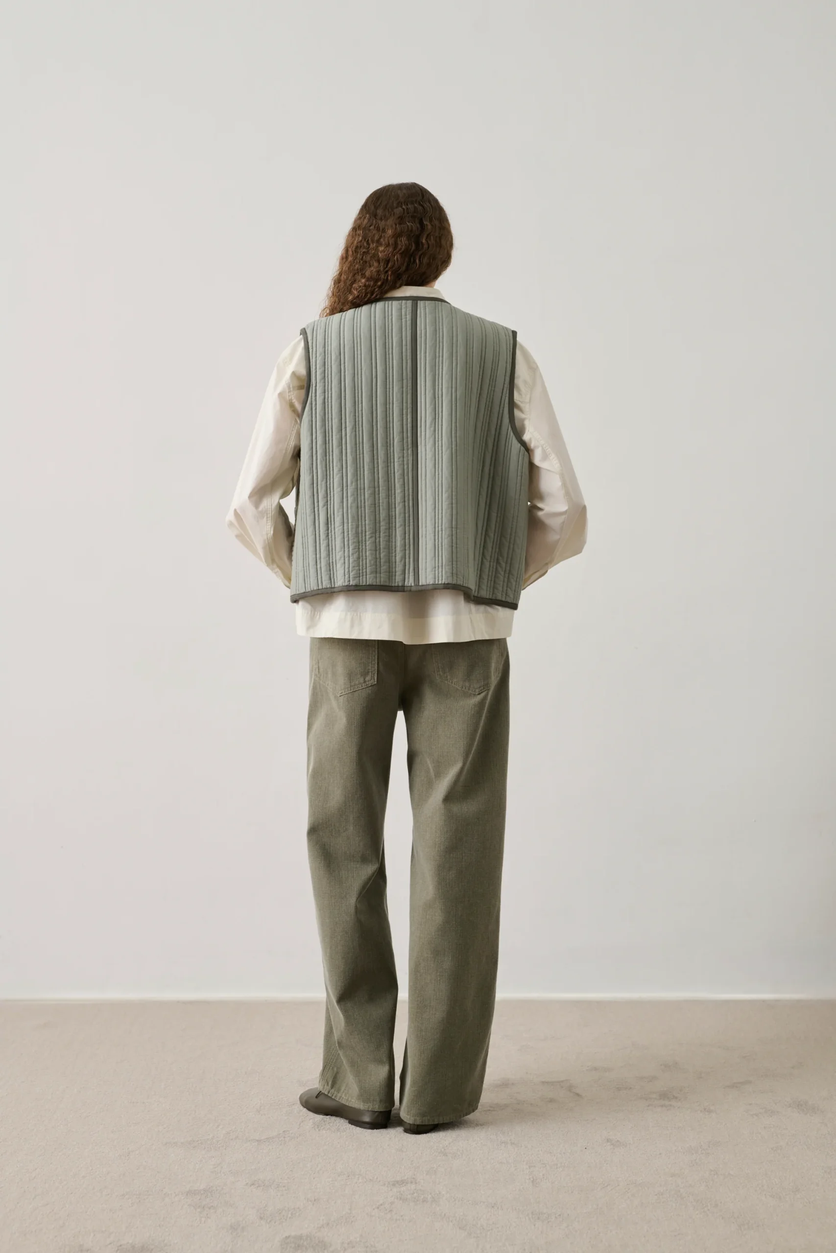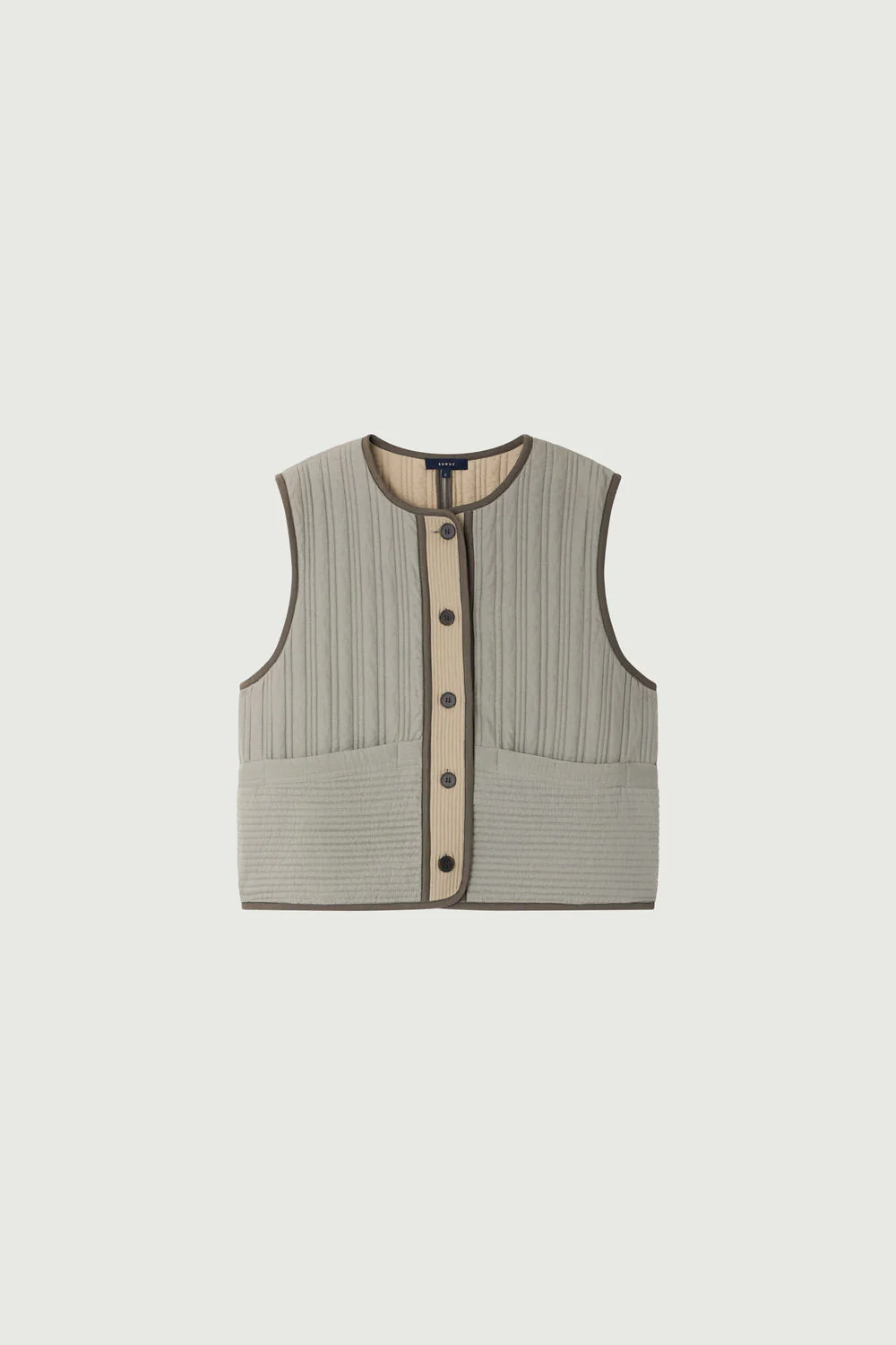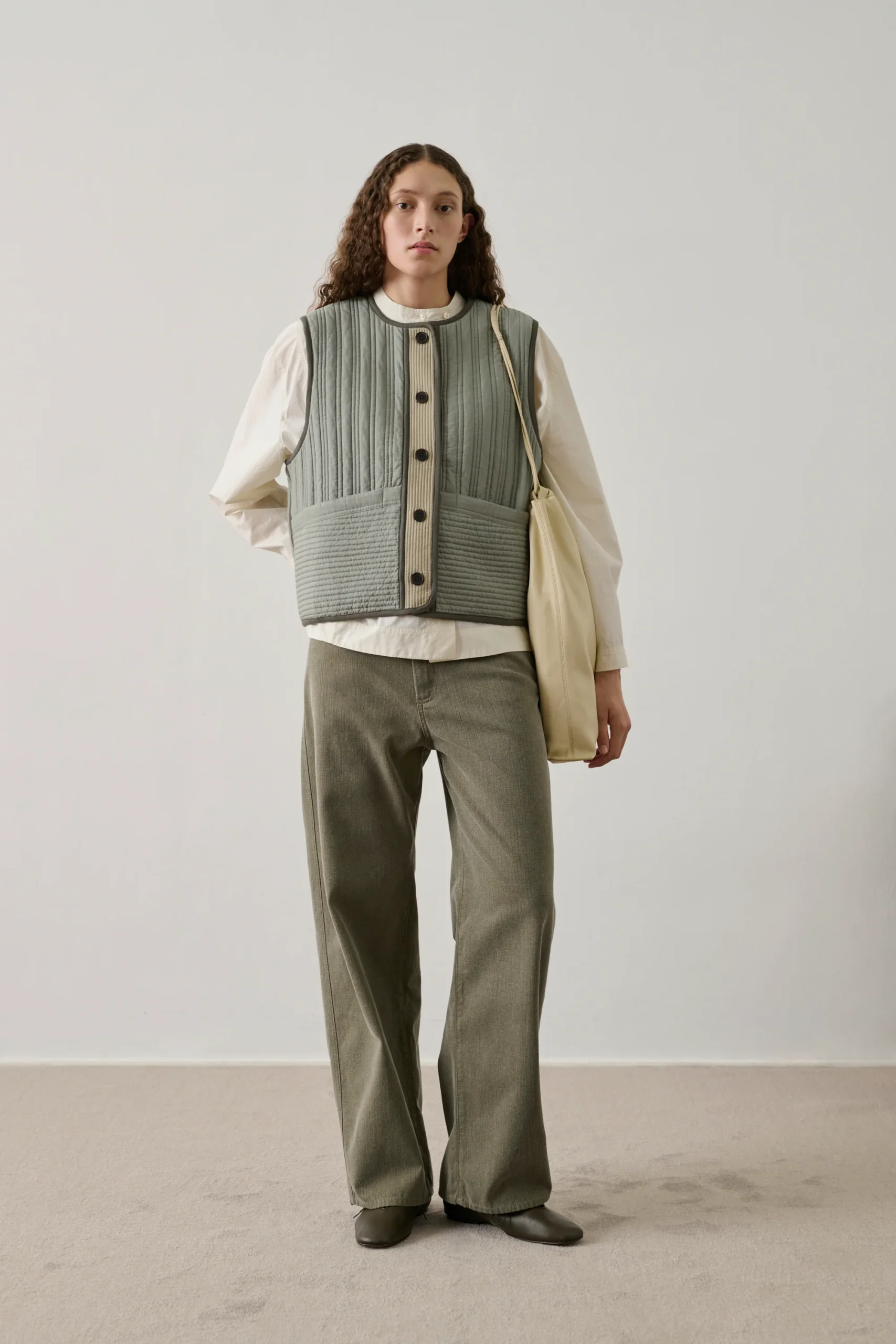 – Coupe droite – Col rond – Patte de boutonnage corps – Deux poches asymétriques