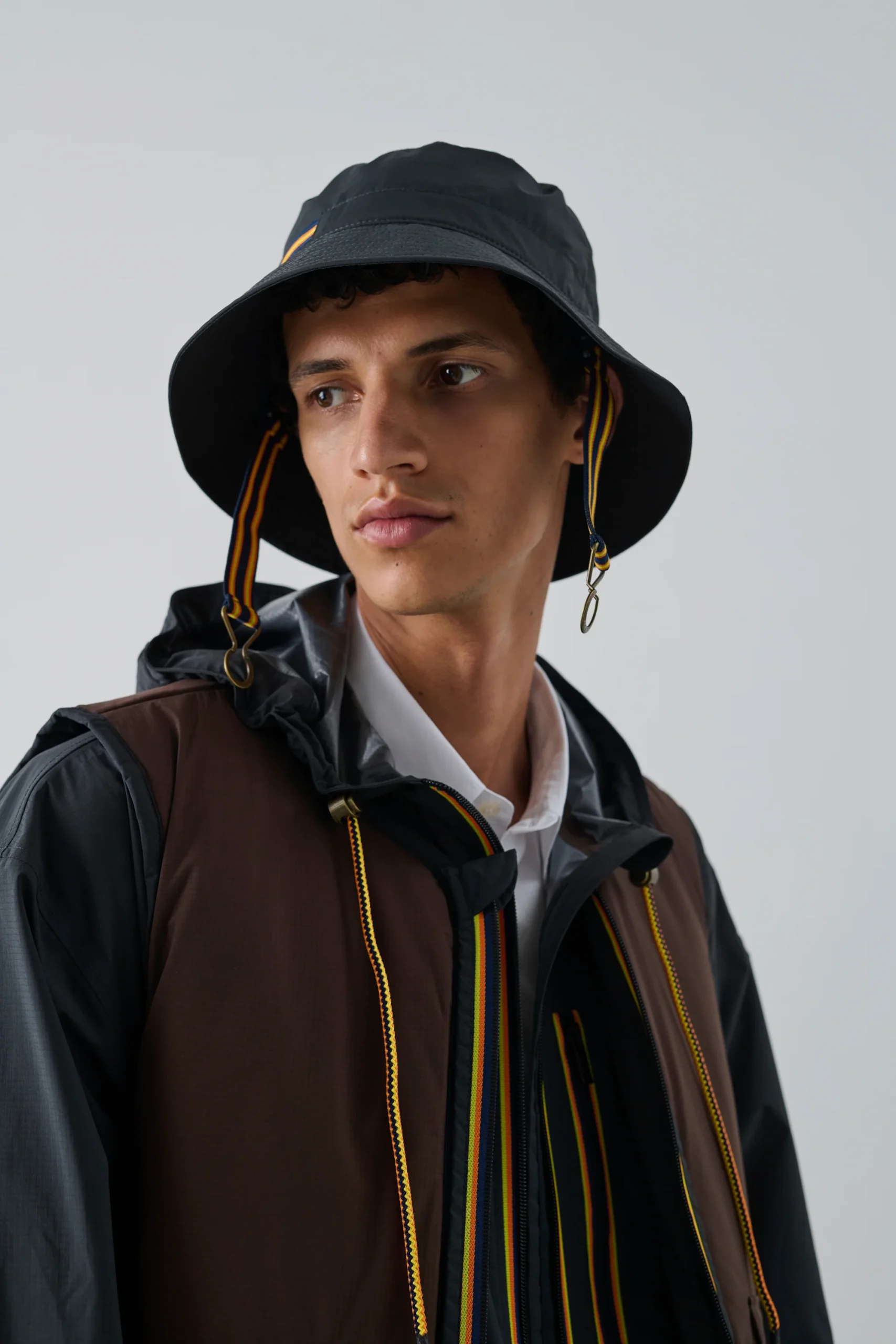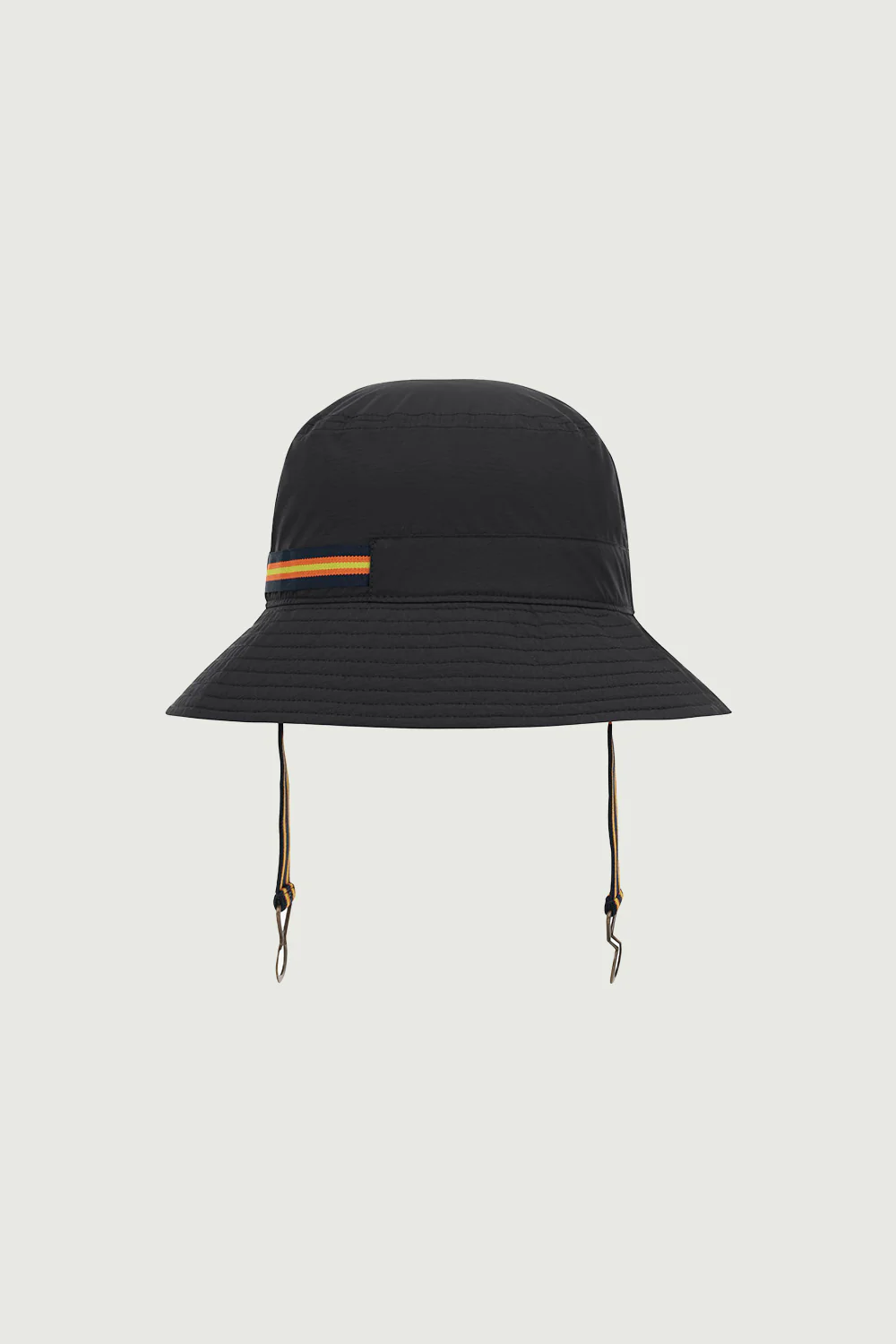Le détail qui fait la différence : un cordon ajustable avec stoppeurs, contrasté et inspiré de l’outdoor, qui assure un bon maintien quelles que soient les conditions. Il se plie facilement pour se glisser dans une poche ou un sac.