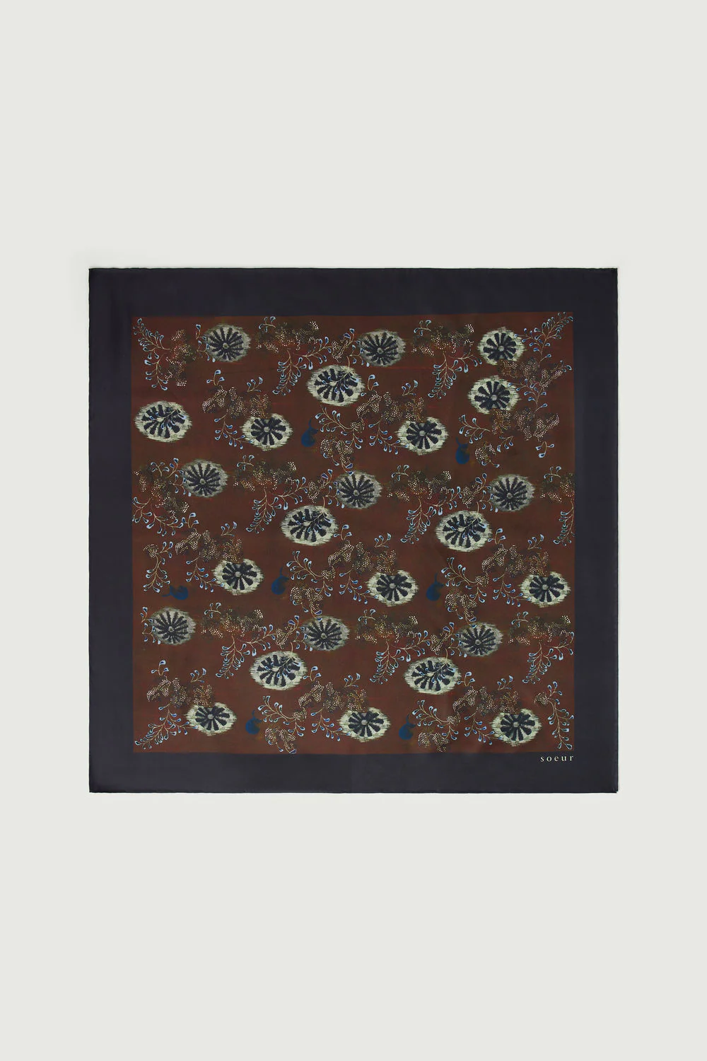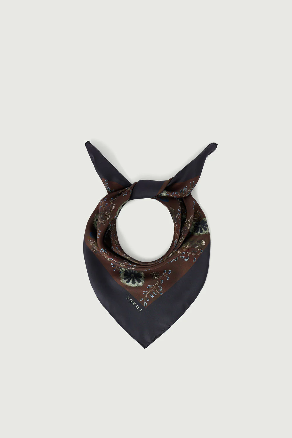 CAPUCINE est un foulard en soie imprimée. Signature du vestiaire Soeur, nos carrés en soie apportent une touche d’élégance et de fantaisie à n’importe quelle tenue : noué autour du cou, dépassant discrètement d’un col de chemise ou de pull, noué sur l’anse d’un sac, ou en fichu sur la tête…