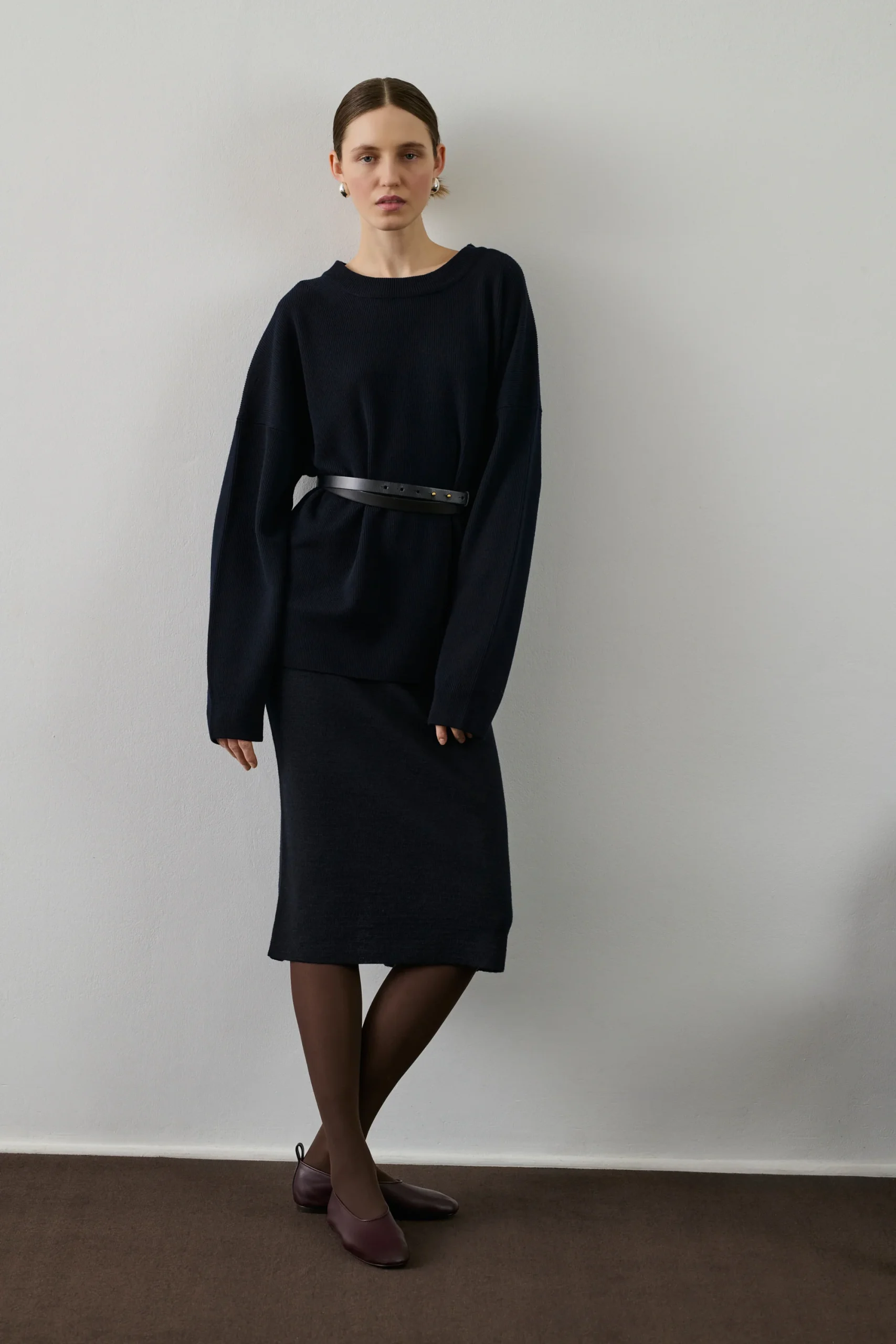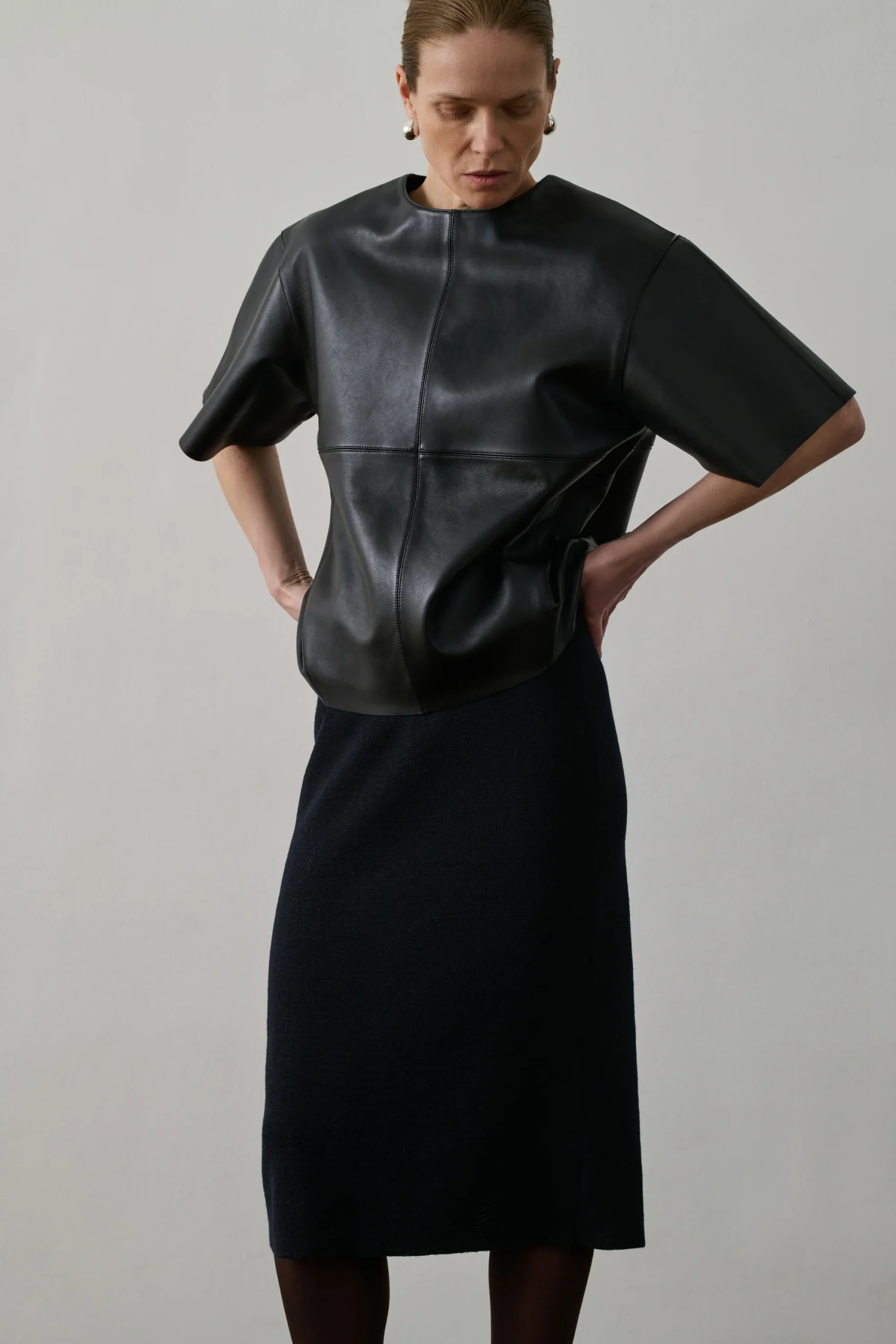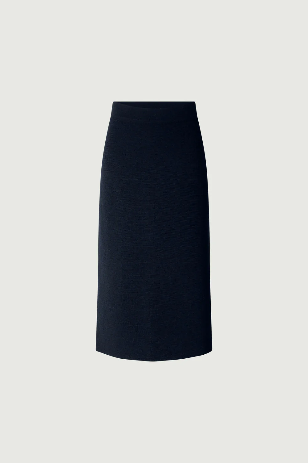 FABIA est une jupe droite mi-longue en laine vierge. Sa coupe épurée est rehaussée d’une fente au dos, tandis que sa taille élastiquée assure un ajustement parfait. Le tricot dense procure chaleur et structure, idéale pour une allure élégante et intemporelle.
