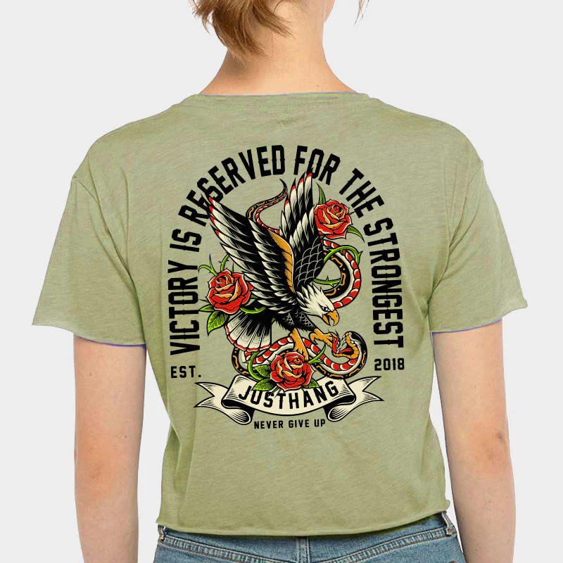 Design représentant le combat d’un aigle face à un serpent dans un style old school, qui l’emportera ? Ce qui est sûr, c’est que la victoire sera réservée au plus fort !