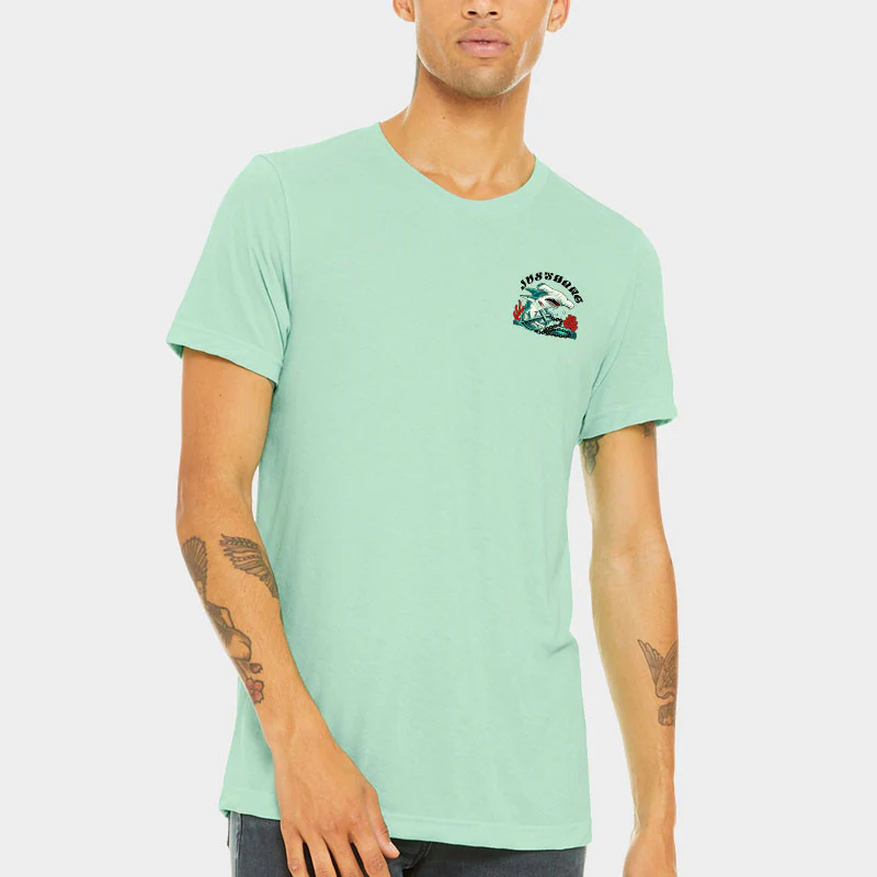 Le T-shirt pour homme JUSTHANG Hammerhead Shark, présenté ici en coloris menthe, est un modèle à manches courtes, conçu pour vos sessions de fitness et de training.