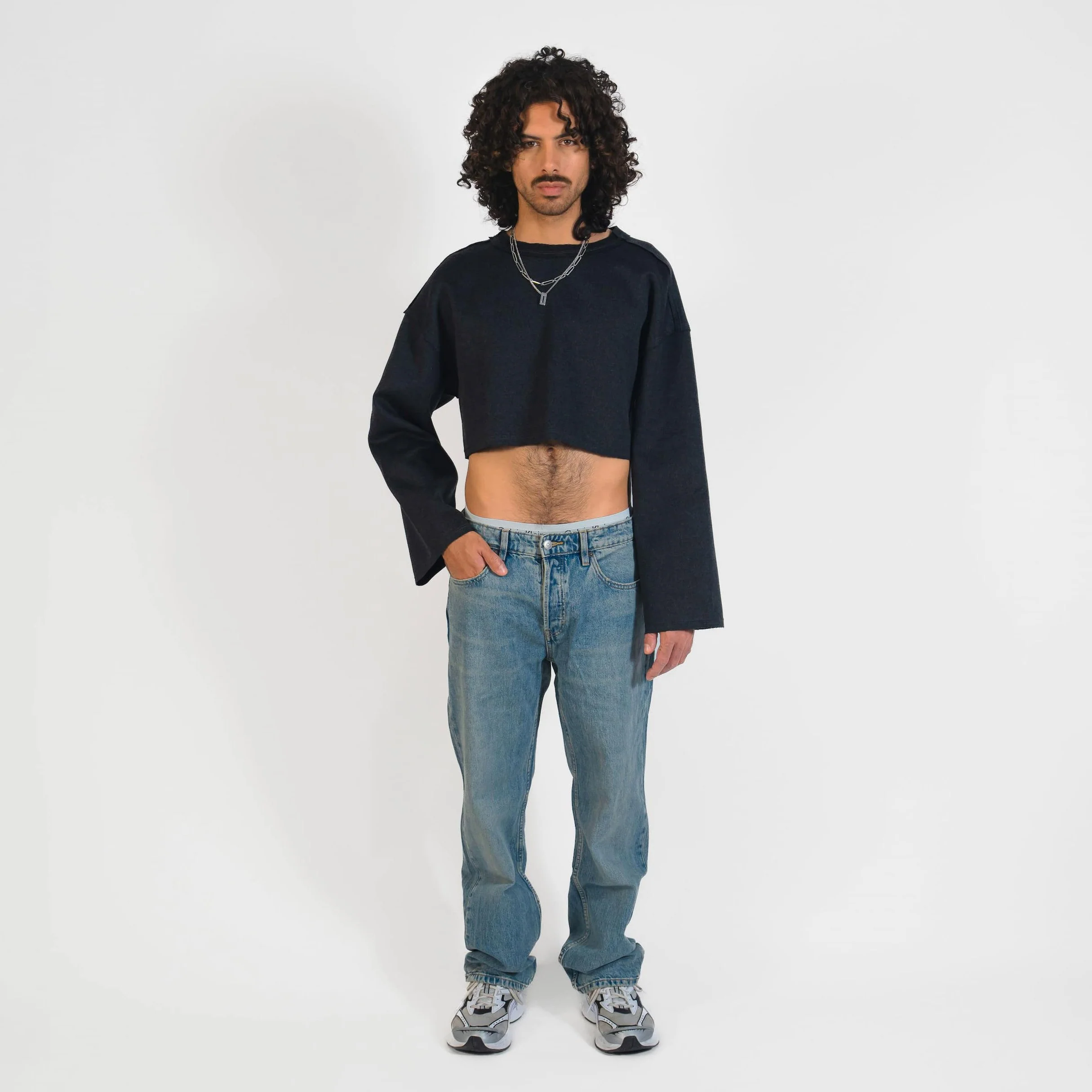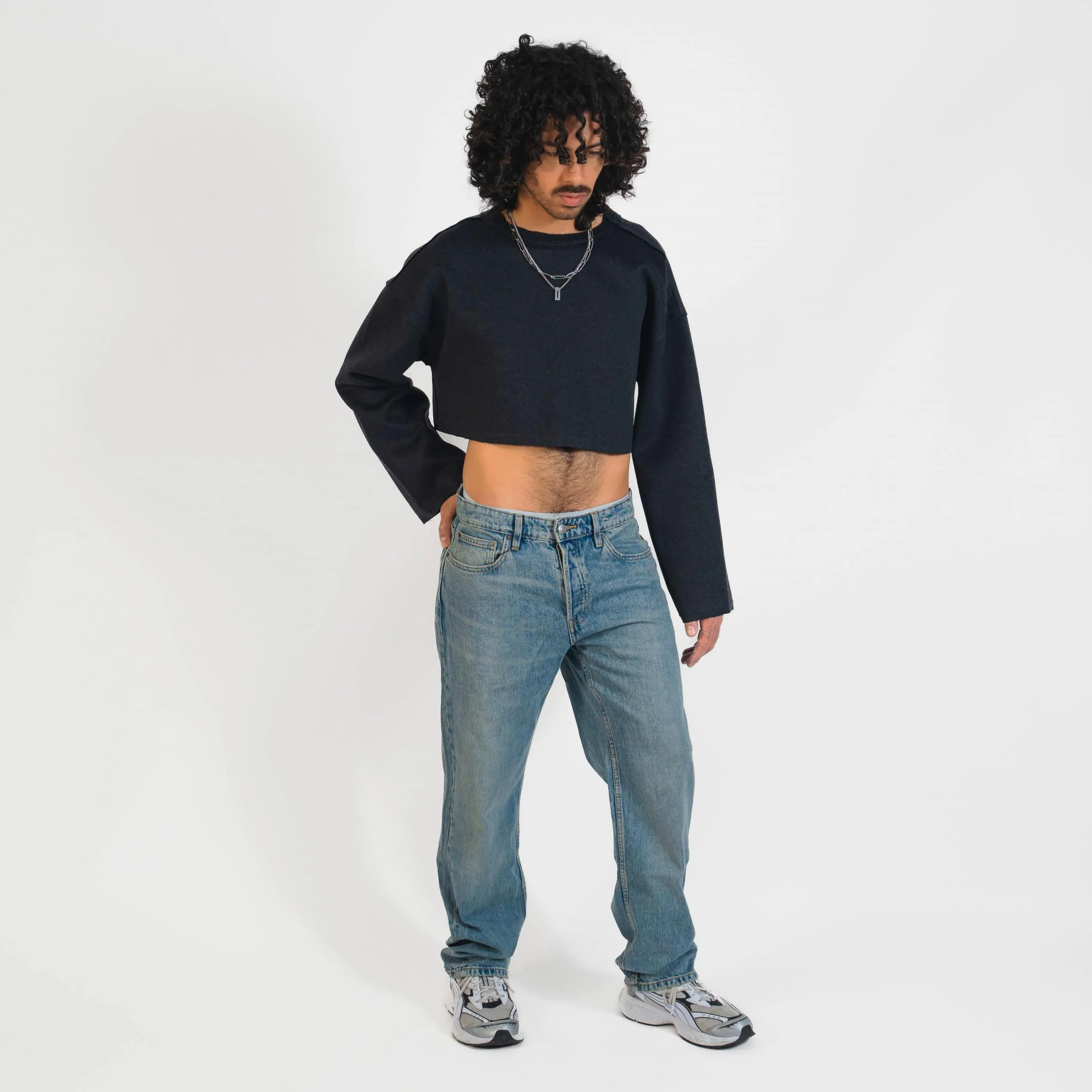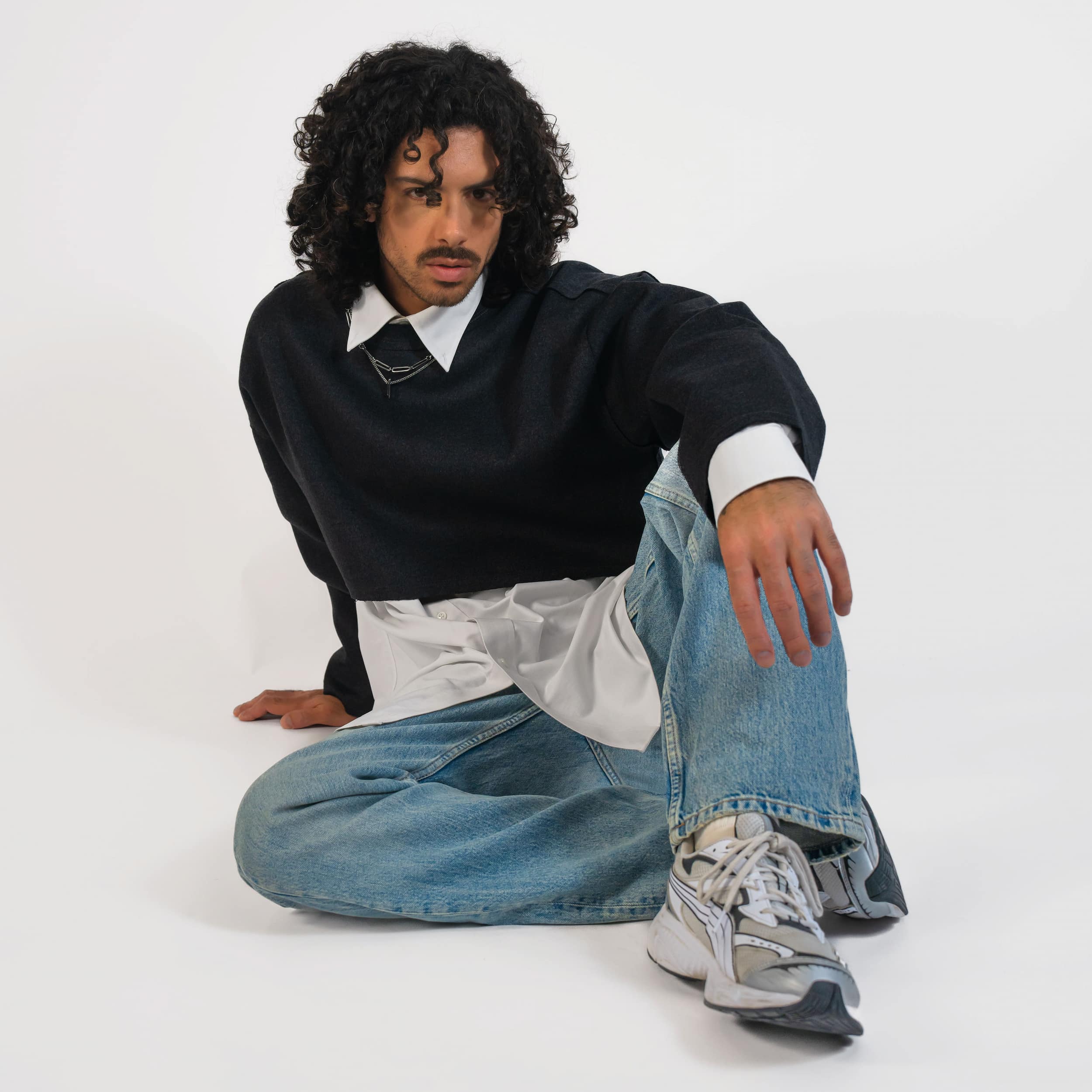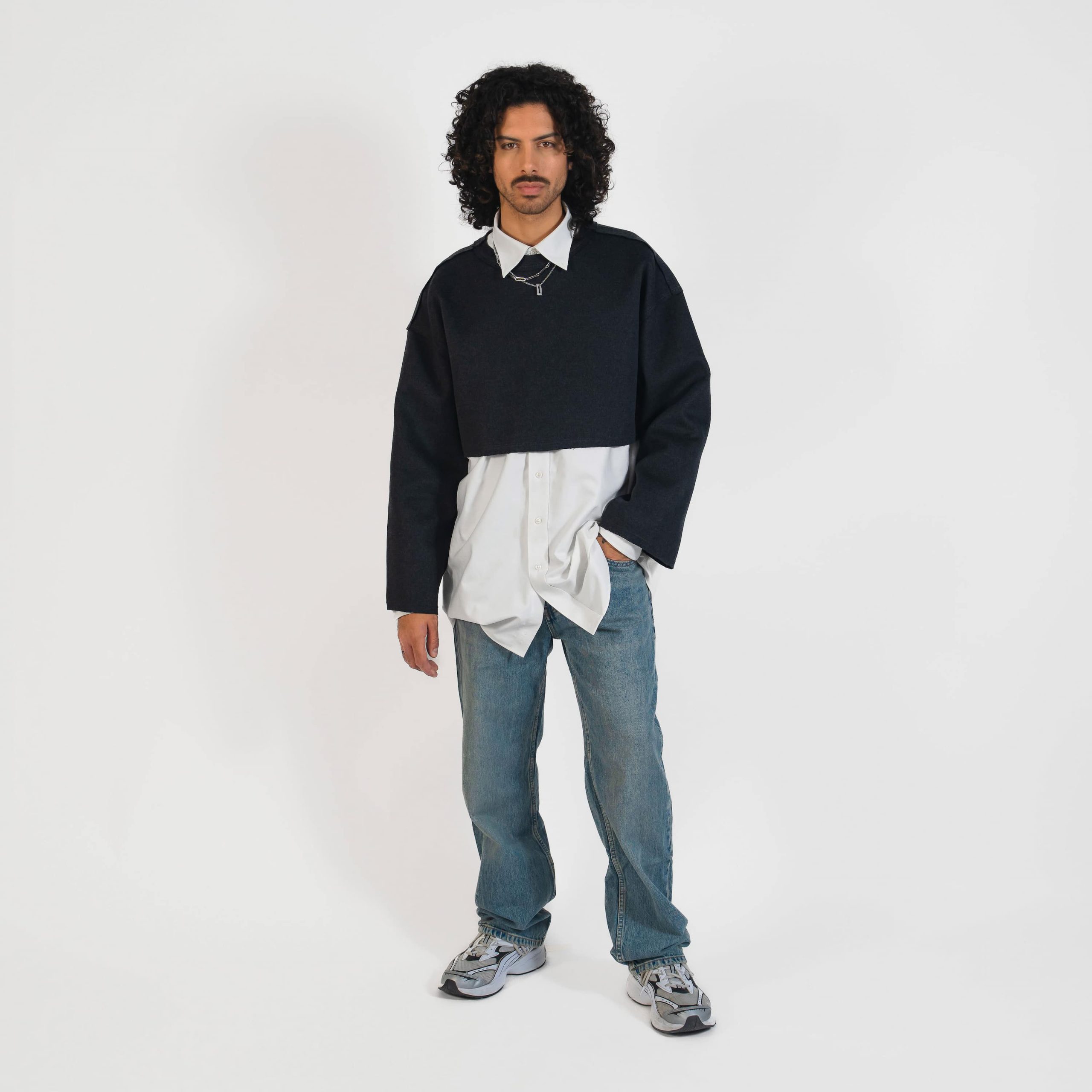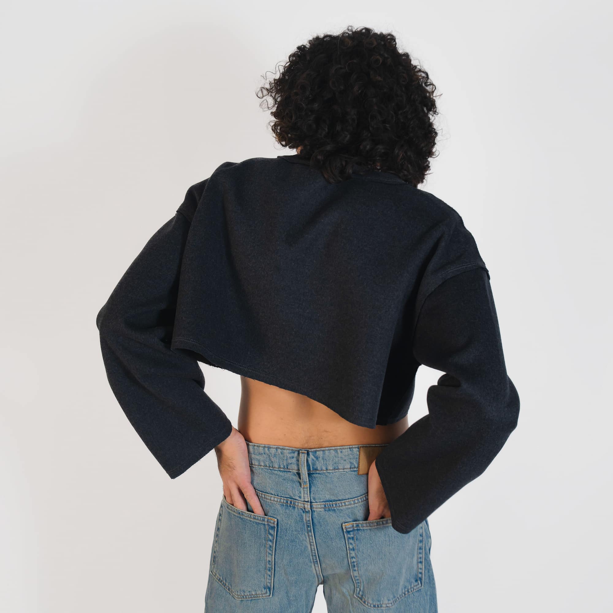 Conseil tailles : Attention, ce modèle est particulièrement oversize. Si vous hésitez entre deux tailles, préférez la taille en-dessous. Ici Yann porte le crop top BIEBER en taille M et mesure 1m75 (et il est plutôt large d’épaules).