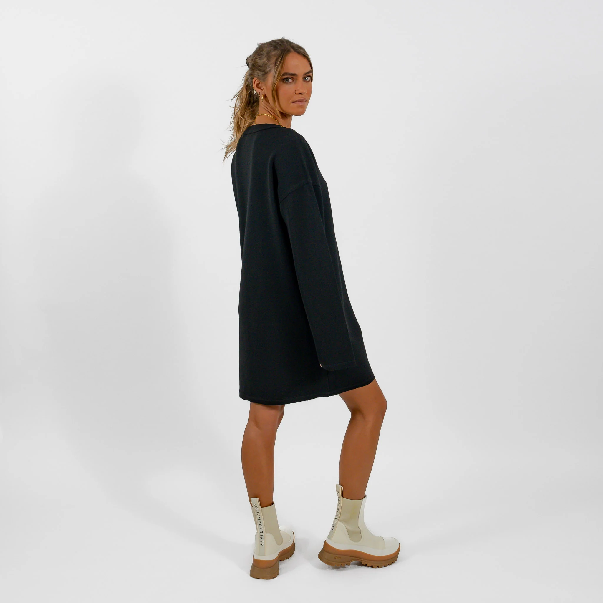 Attention : la photo de la version maxi (longueur chevilles) est simplement là pour vous montrer la longueur des manches courtes – en achetant le kit de la mini robe < bieber > ici, vous recevrez bien le kit de la mini robe (longueur mi-cuisses) et non de la maxi robe !
