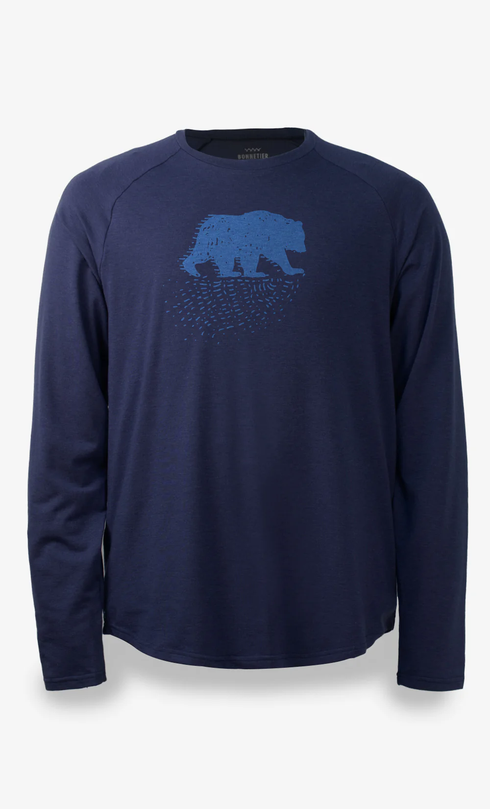 Alliant conscience écologique et design moderne, ce haut à manches longues bleu marine est fabriqué au Québec à partir de matières durables. Conçu pour les hommes actifs, il combine 50 % de coton biologique certifié GOTS et 50 % de polyester recyclé, assurant douceur, légèreté et résistance au quotidien.