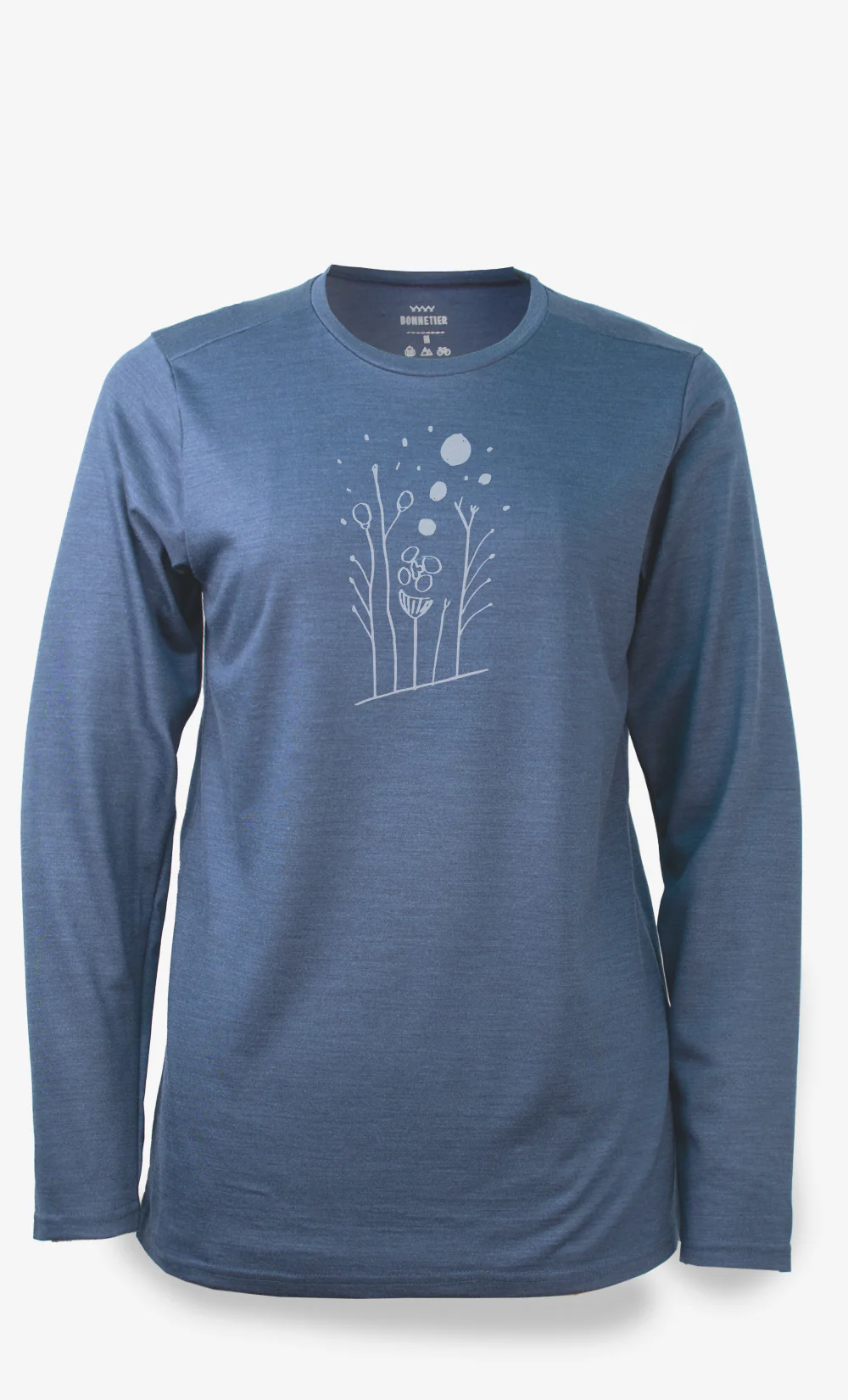 Manches longues Mérinos Femme Bleu-gris Chiné – Forêt