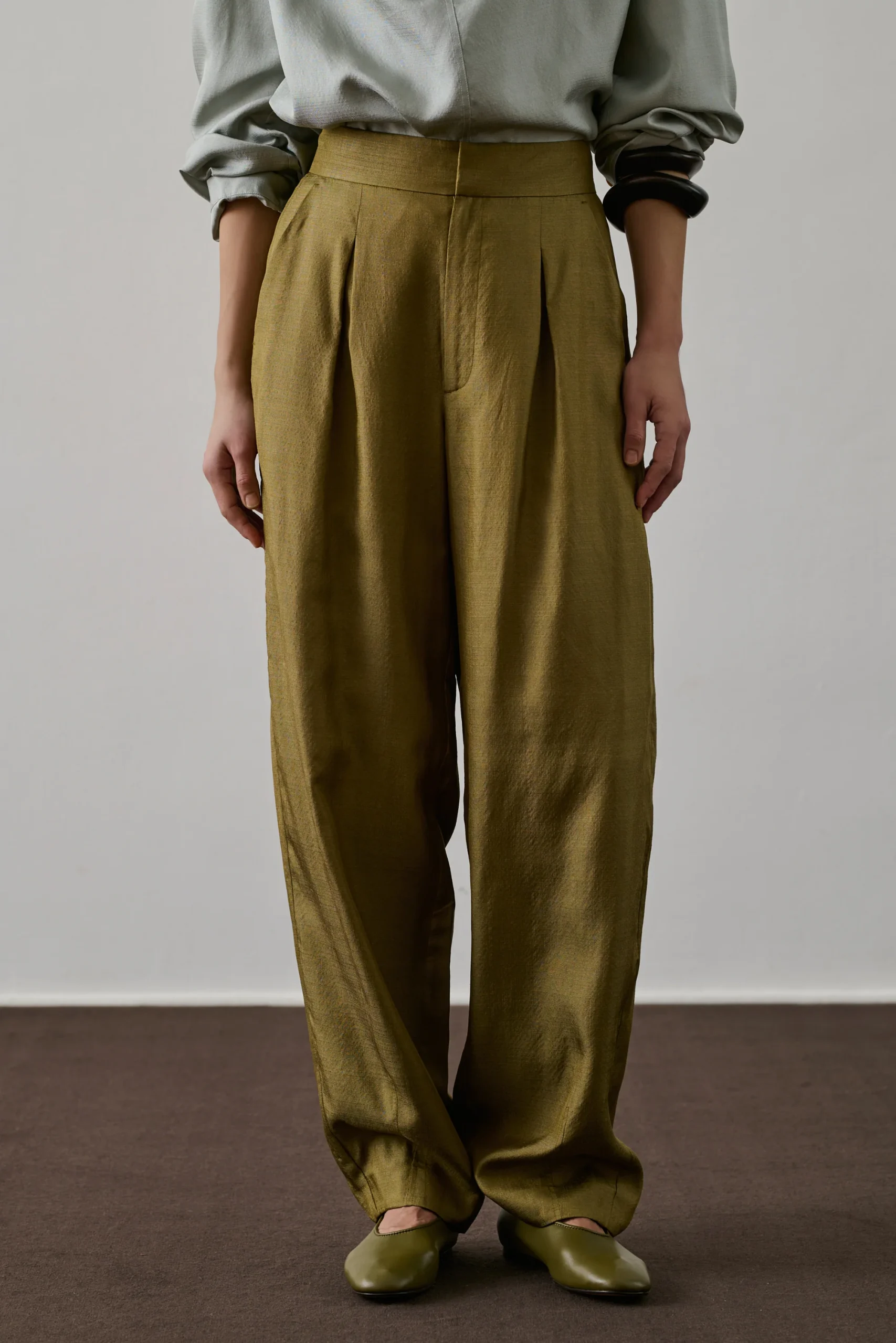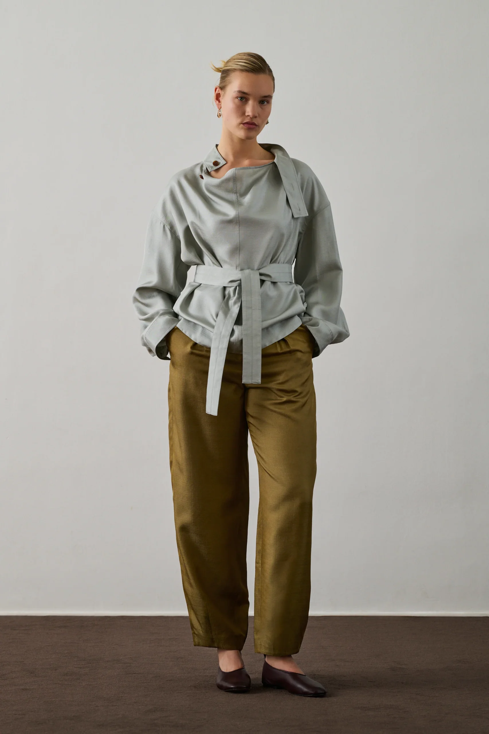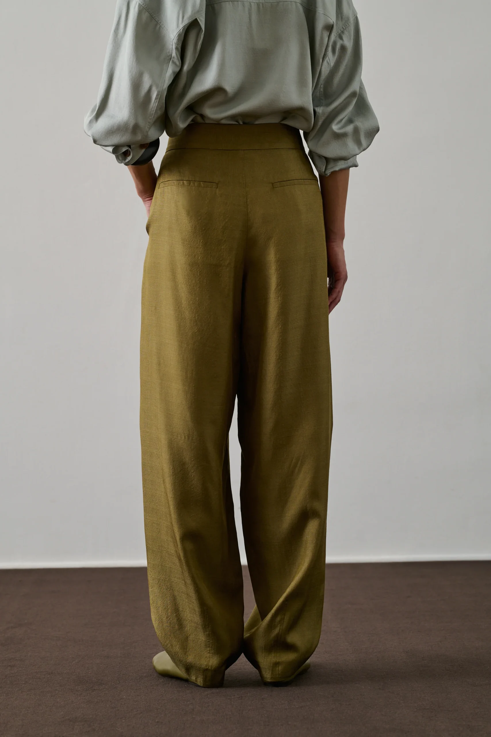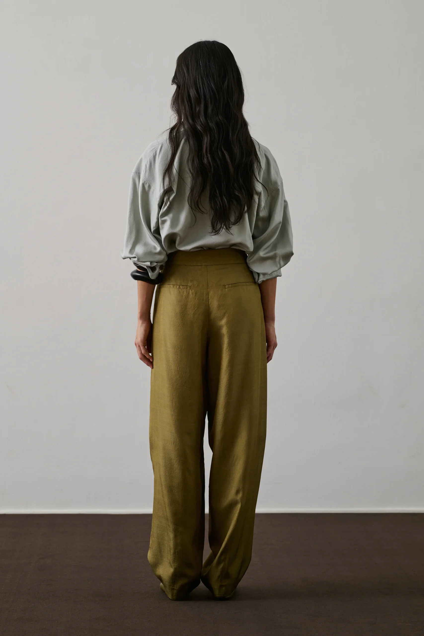 BAPTISTE est un pantalon en soie à la coupe ample et longueur cheville. Ses pinces aux cuisses et son tissu brillant apportent une allure élégante. Doté d’une ouverture boutonnée et de poches avant et arrière, il incarne le chic avec son montage tailoring.