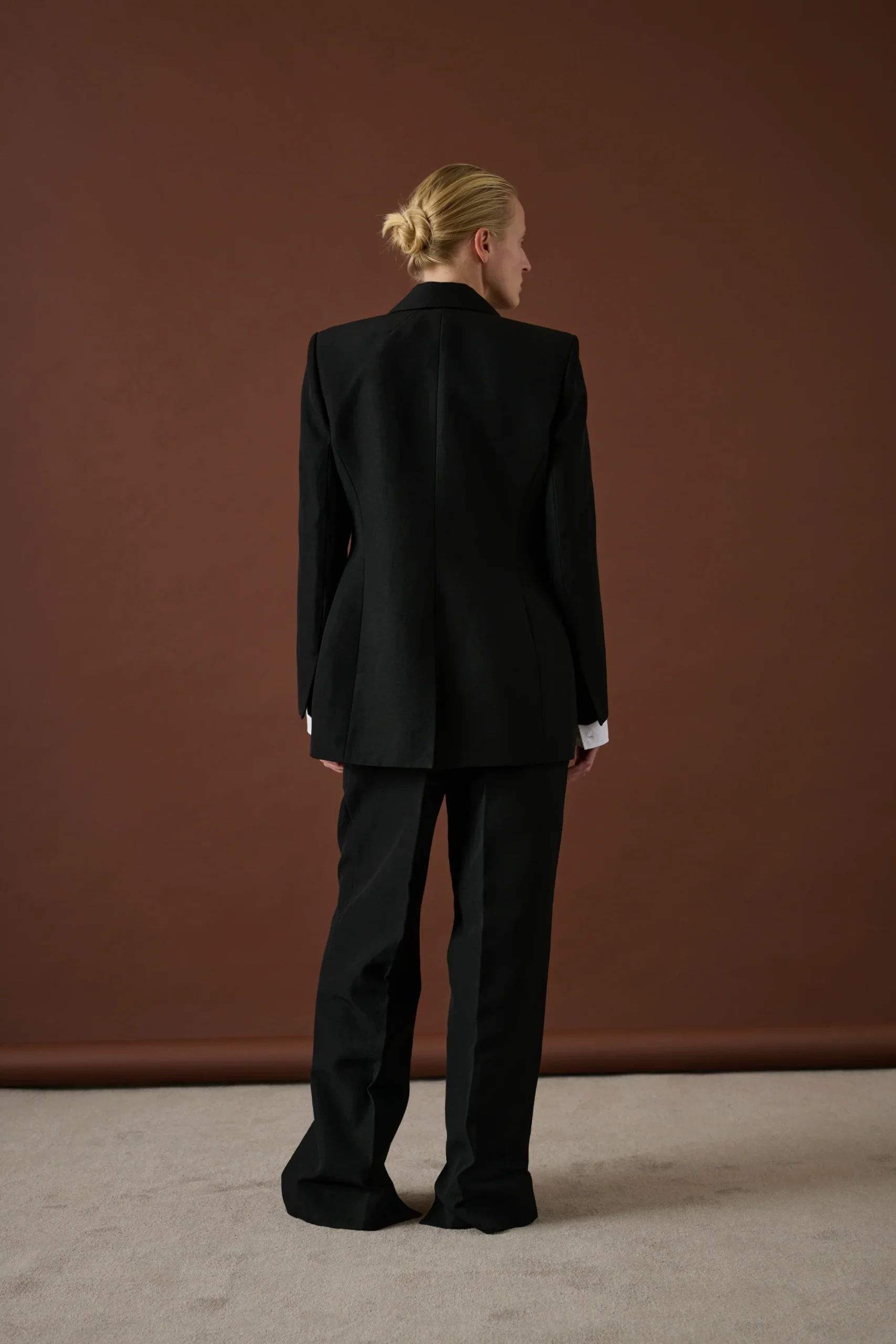 ERIK est un pantalon de costume en viscose-lin flammée, à la coupe droite. Sa matière texturée révèle un relief naturel et des irrégularités caractéristiques de l’effet flammé, apportant du caractère à la silhouette.