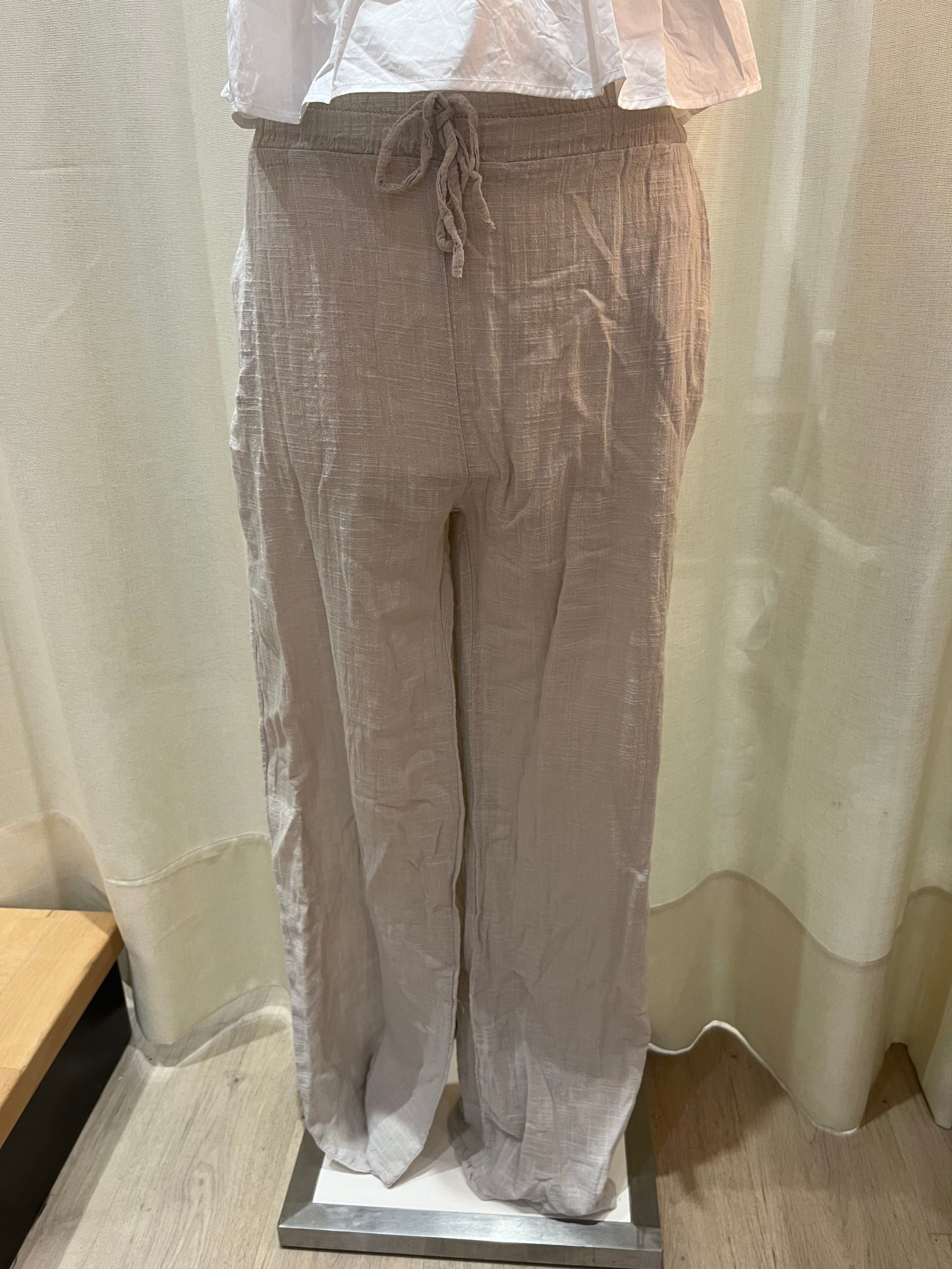 Le pantalon Lana, confortable et féminin ! Pantalon fluide élastique et noeud à la taille lin Le mannequin porte une taille unique *Les TU conviennent en général du 34 au 44, selon votre morphologie il sera plus ou moins cintré