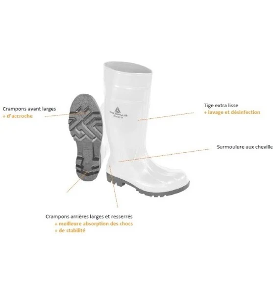 Bottes de cuisine avec semelle crampon large avant et resserrée arrière