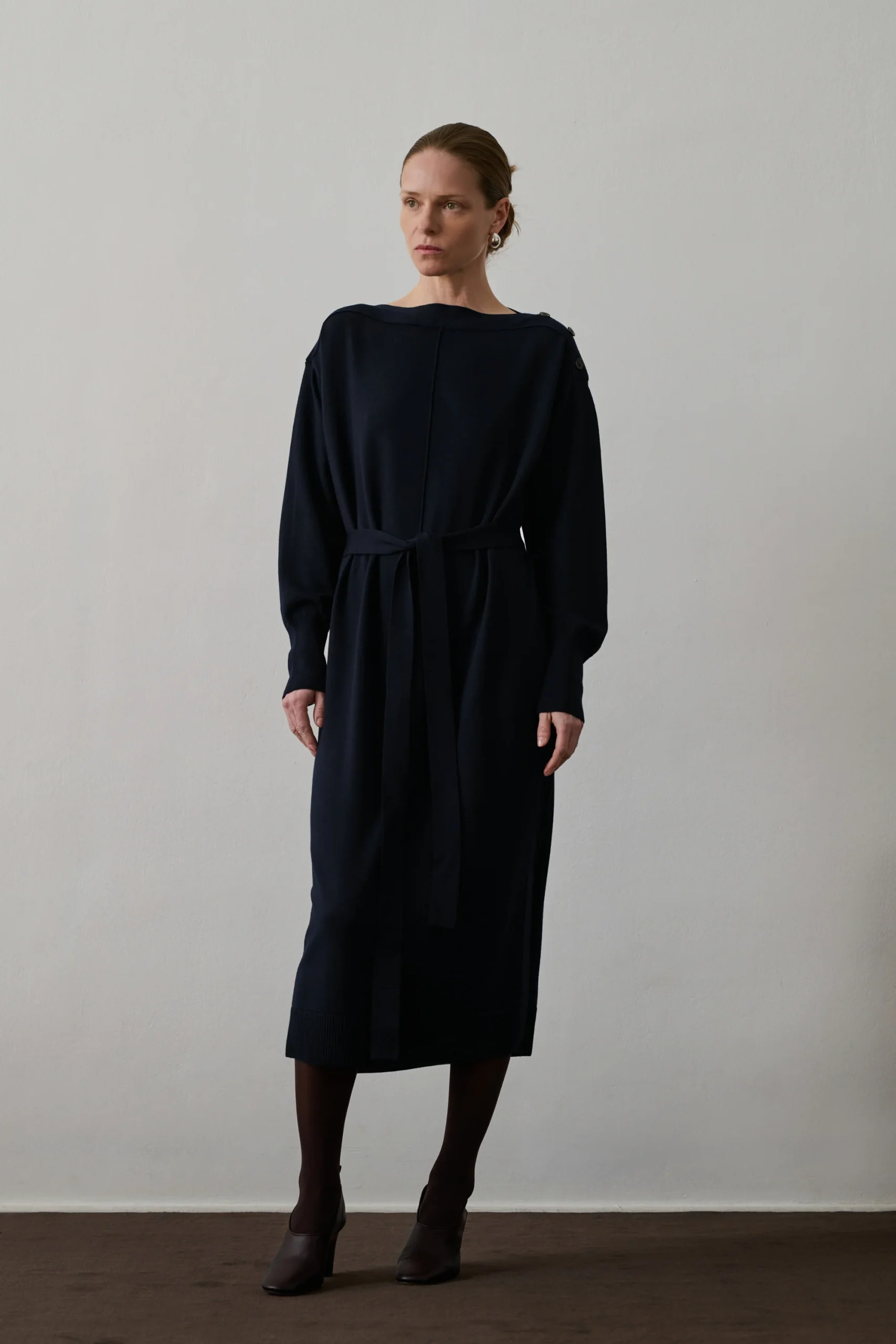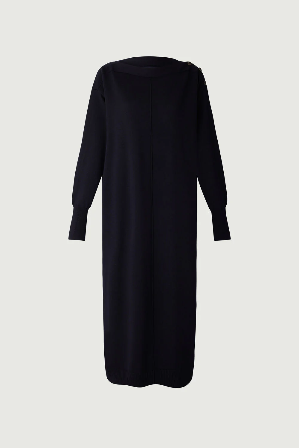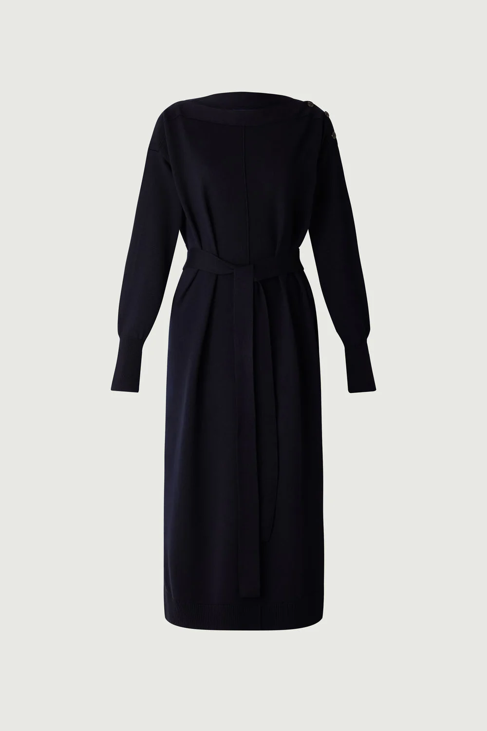 CLEA est une robe longue en maille à la coupe droite et manches longues. Son col bateau et le boutonnage à l’épaule ajoutent une touche d’élégance. Fendue sur les côtés, elle est dotée d’une ceinture amovible. En laine mérinos, elle est légère et douce, parfaite pour la mi-saison.