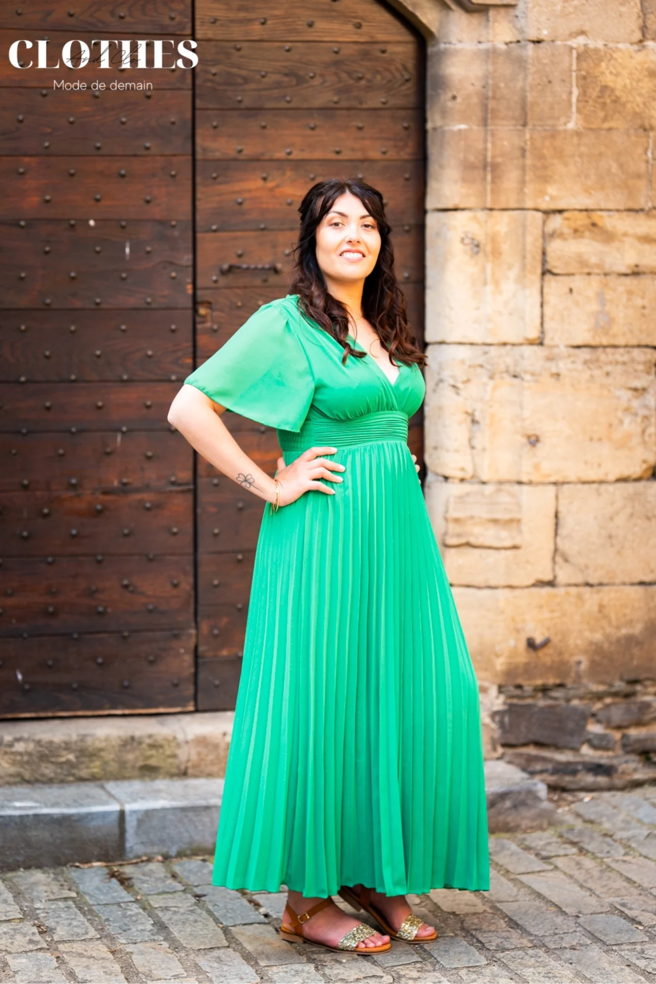 La robe daphné, élégante et tendance ! – fluide – plissée – col V Le mannequin porte une taille unique *Les TU conviennent en général du 34 au 44, selon votre morphologie il sera plus ou moins cintré