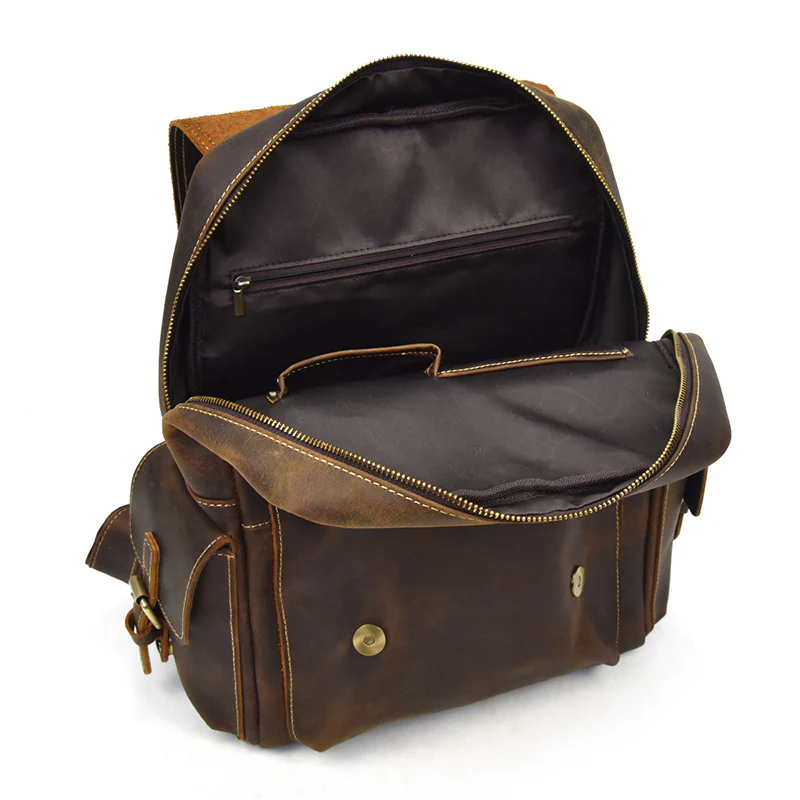 Cuir Crazy Horse premium : Ce matériau haut de gamme offre une texture unique, résistante aux rayures et qui gagne en caractère avec le temps.