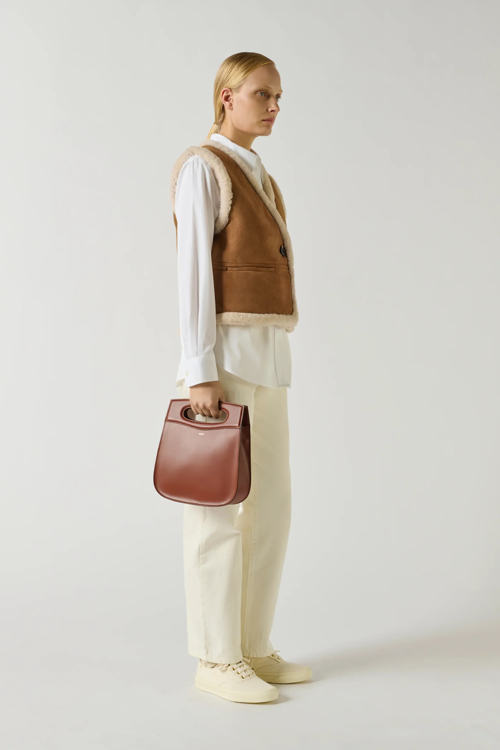 CHERI est l’un de nos sacs iconiques reconnaissable par sa poignée ovale moulée. Ce sac est l’allié du quotidien, pouvant se porter aussi bien à la main, qu’à l’épaule ou en bandoulière. Il dispose de deux anses amovibles et interchangeables : une chaine dorée avec un patch en cuir, et une en coton à la longueur ajustable.