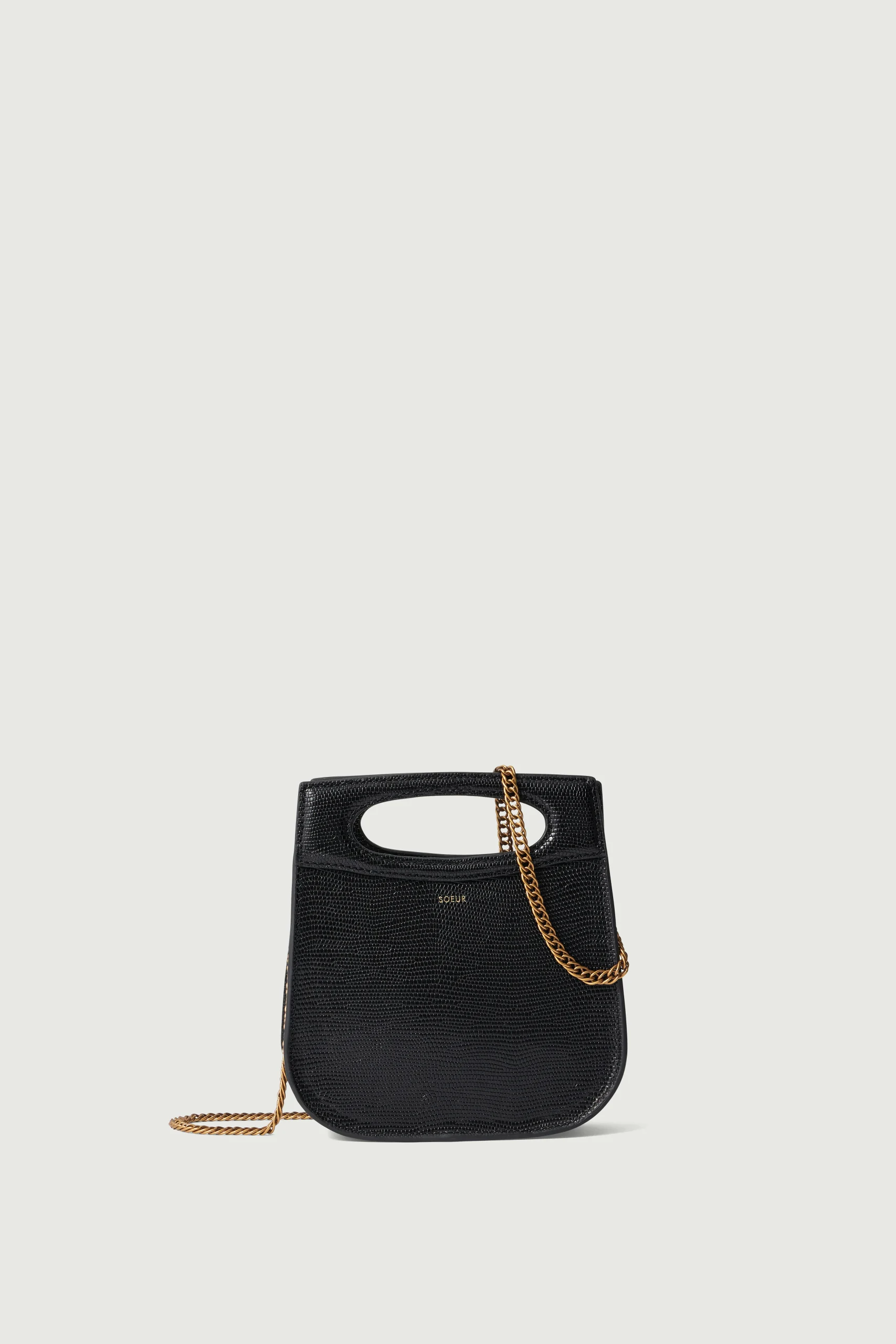 CHERI MINI est la déclinaison miniature d’un de nos sacs iconiques reconnaissable par sa poignée ovale moulée. Il se porte aussi bien à la main qu’en bandoulière grâce à sa fine chaine dorée. Il saura ponctuer une tenue habillée. Il se révèlera également pratique au quotidien pour n’emporter que l’essentiel.