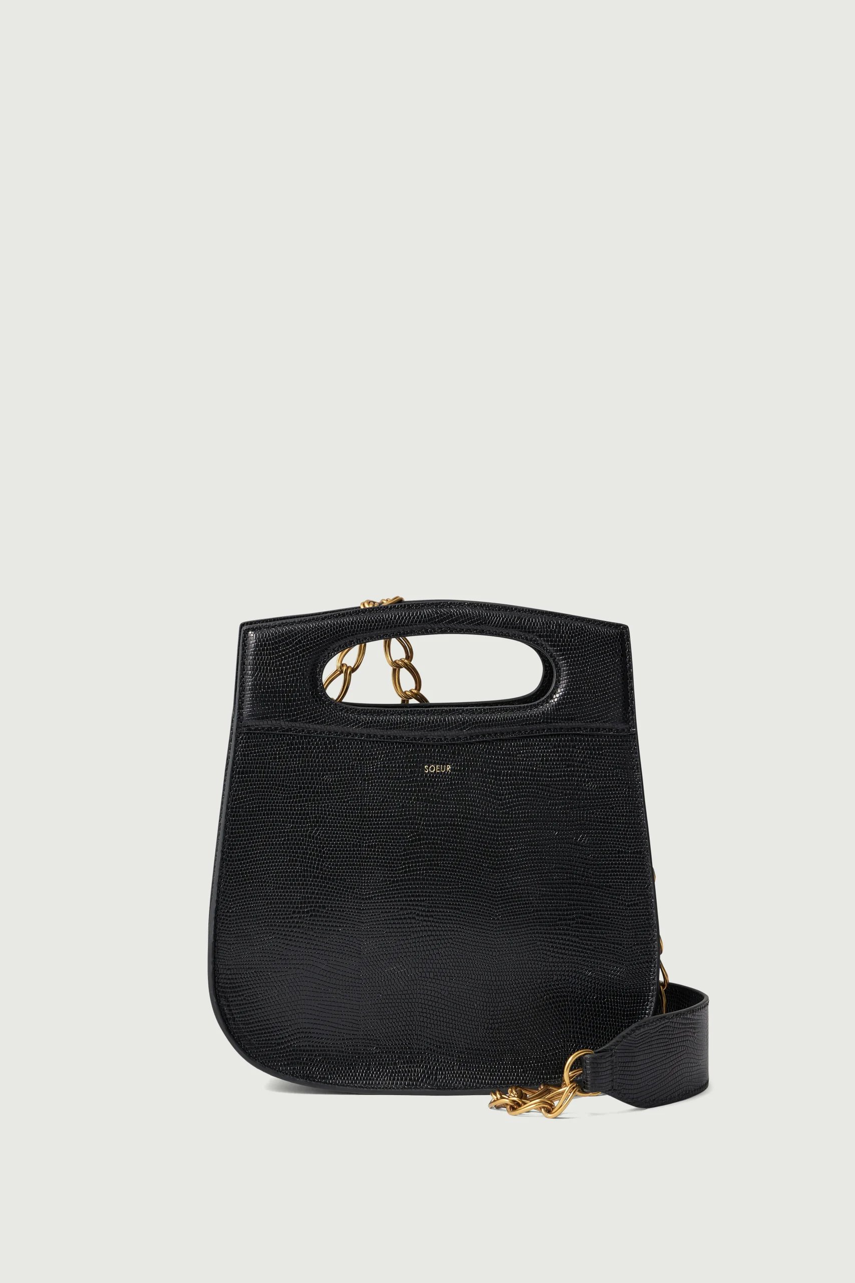 Sac en cuir embossé effet lézard noir