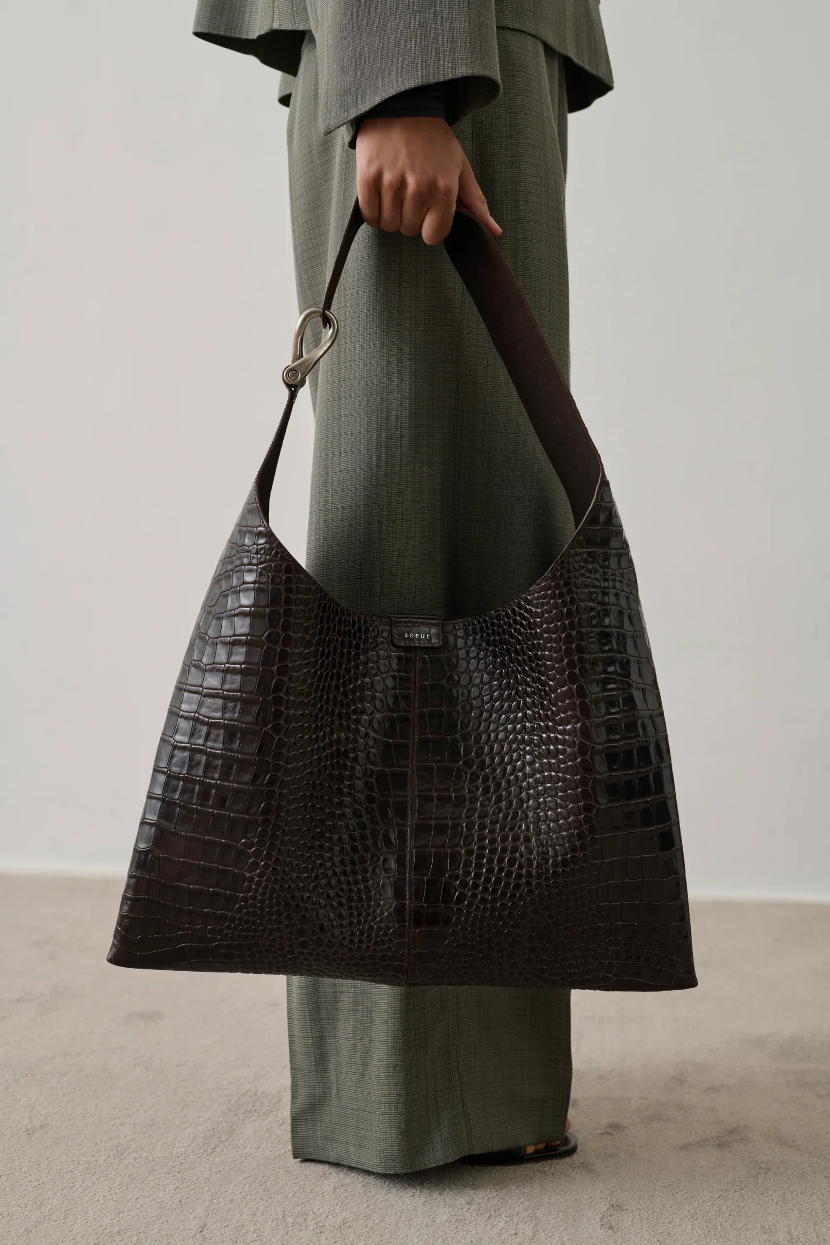 – Sac porté épaule– Dimensions : hauteur 31cm, largeur 46cm– Fermeture magnétique – Une poche intérieure plaquée plate – Pièce métallique argentée– Cuir LWG (Leather Working Group)