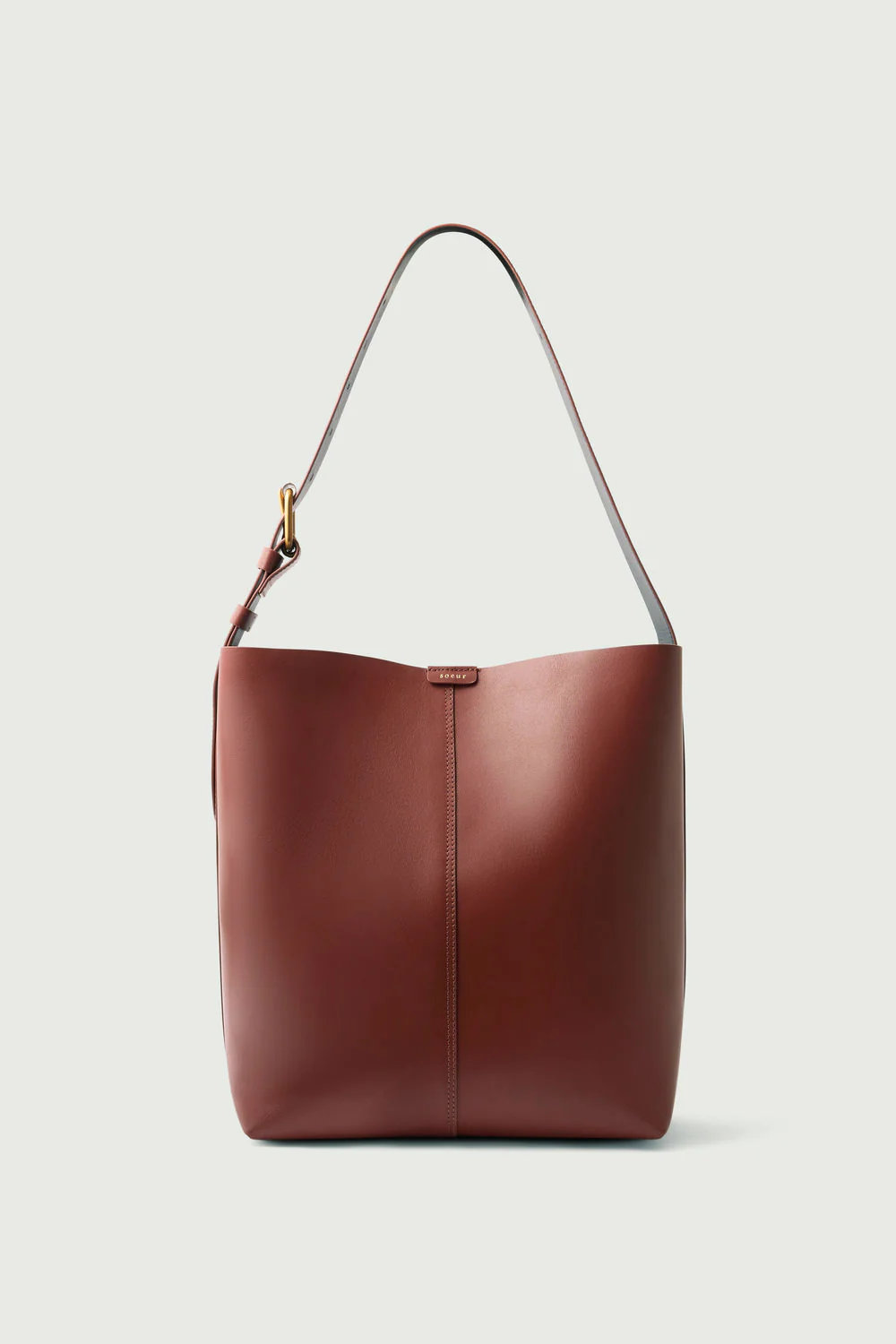 – Sac en cuir bicolore, extérieur acajou, intérieur noir