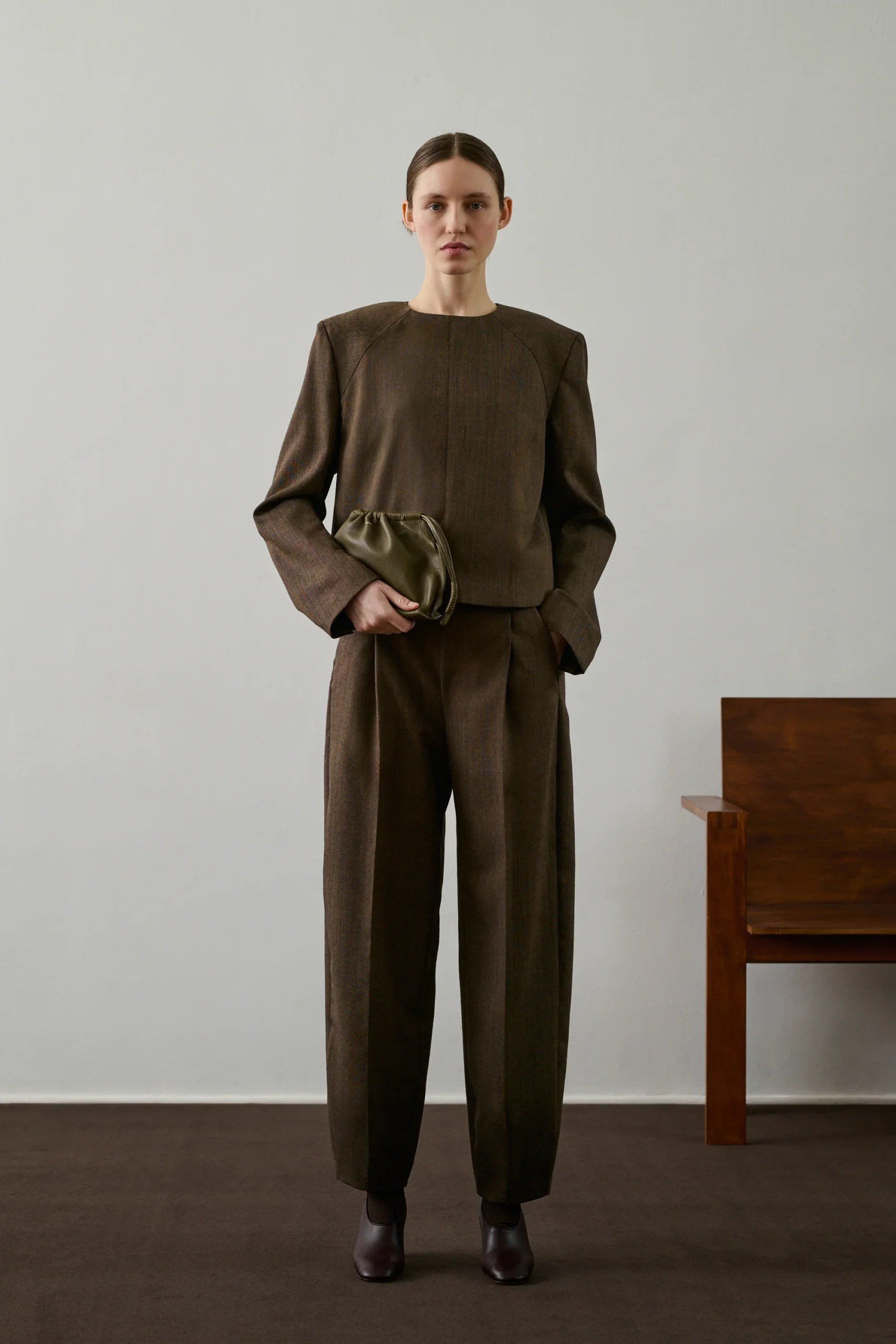 – Petit sac en cuir grainé vert olive