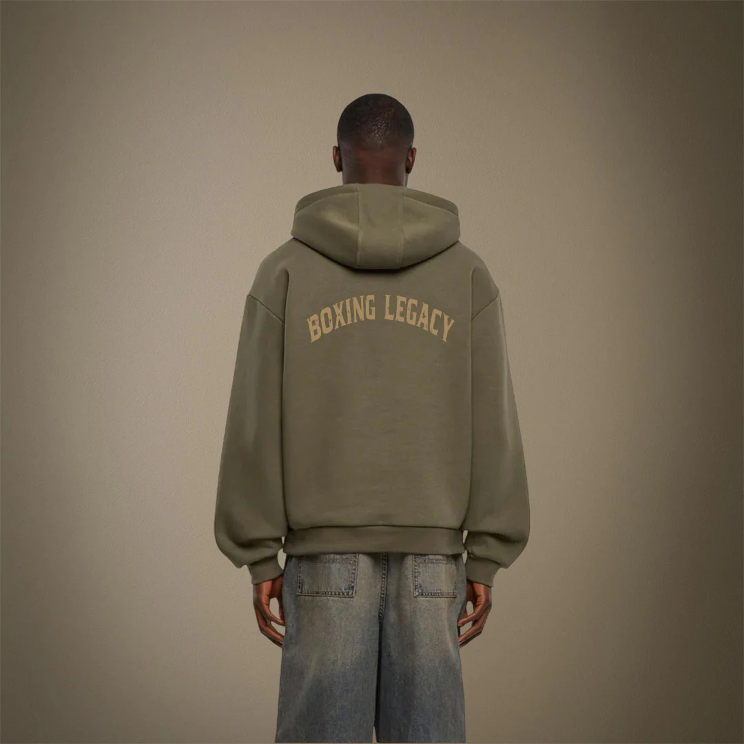 Sa coupe ample, sa capuche pratique et son design sportwear en font une pièce essentielle pour l’entraînement comme pour la ville. Le marquage “BOXING LEGACY” apporte une touche moderne et affirmée pour les passionnés de boxe et de streetwear.