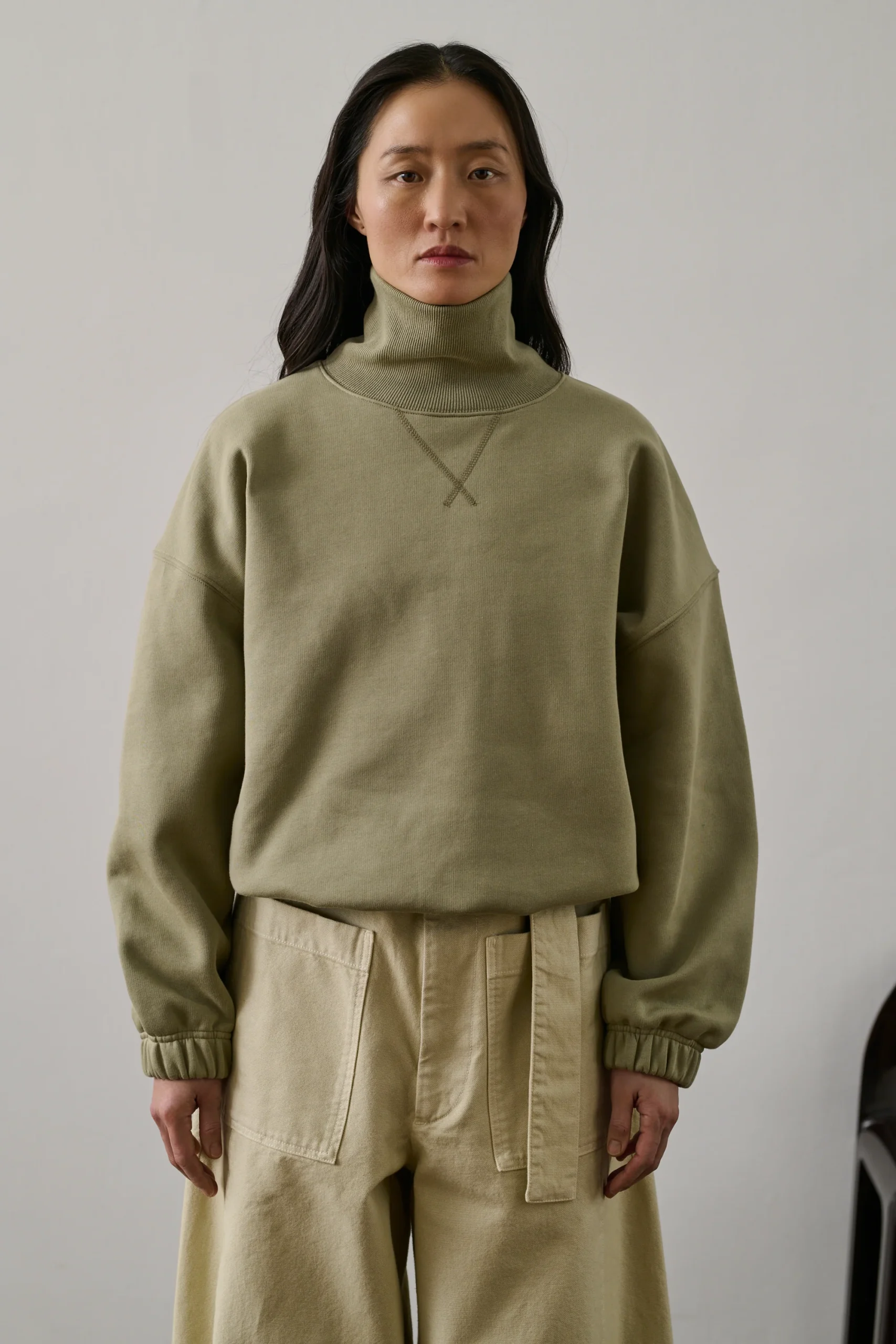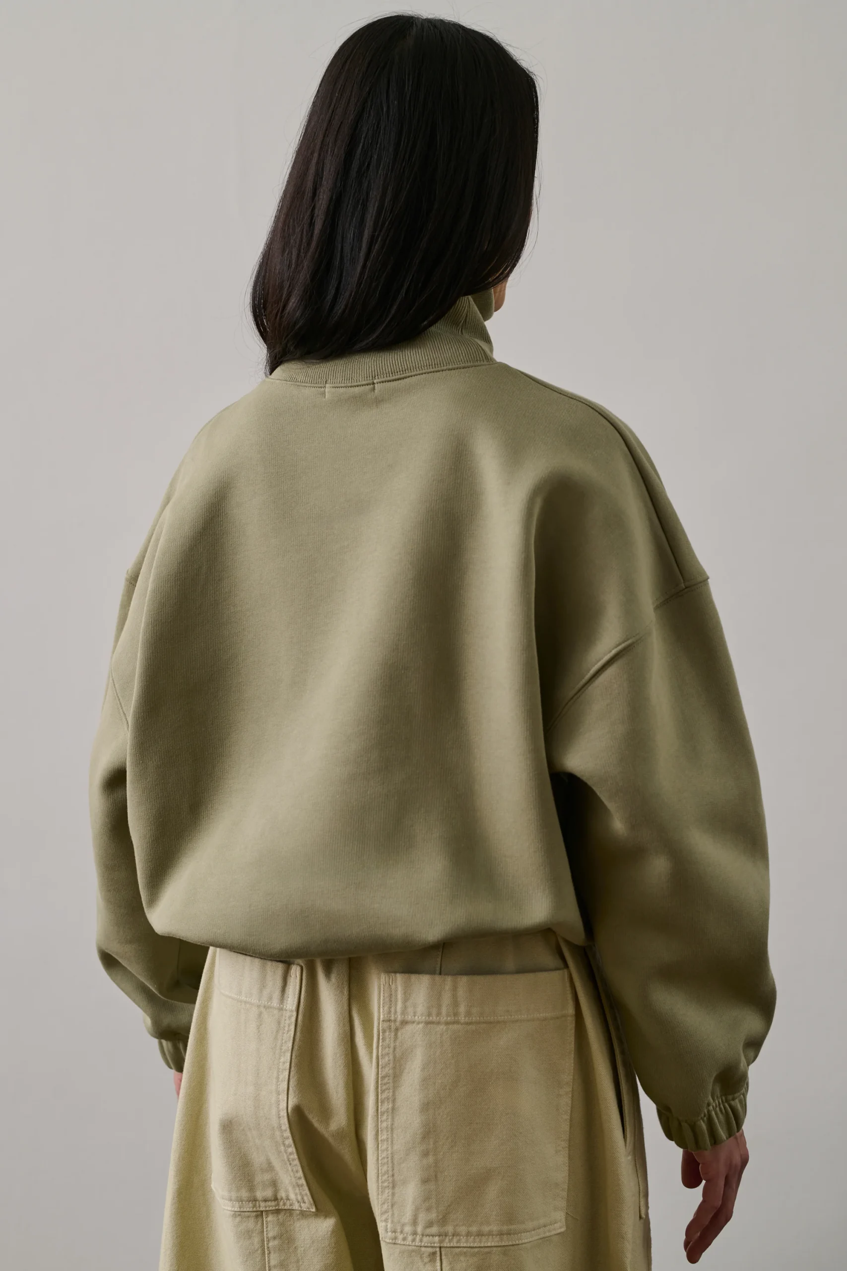 GREGOIRE est un sweatshirt col montant en molleton bio. Sa coupe droite et ample, associée à des manches longues et un col surpiqué, assure une allure élégante. Les poignets et la taille élastiqués apportent confort et maintien. Un choix parfait pour un style chic et décontracté.