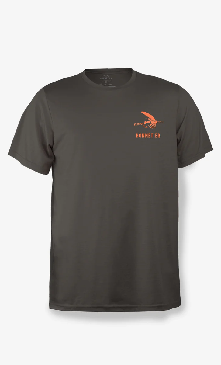 Idéal pour les randonnées, les escapades urbaines ou les voyages prolongés, ce t-shirt ne retient pas les odeurs et peut être porté plusieurs jours sans lavage. Son imprimé mouche évoque l’esprit d’exploration et de nature.