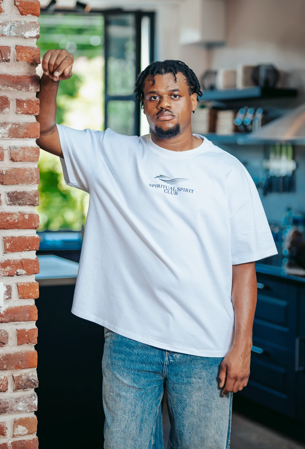 Silhouette oversize avec épaules tombantes, col rond propre et tombé droit. Le jersey dense 300 g/m² donne de la tenue sans rigidité : opacités parfaites, confort respirant. Une base minimale qui impose une allure contemporaine, seule ou superposée.