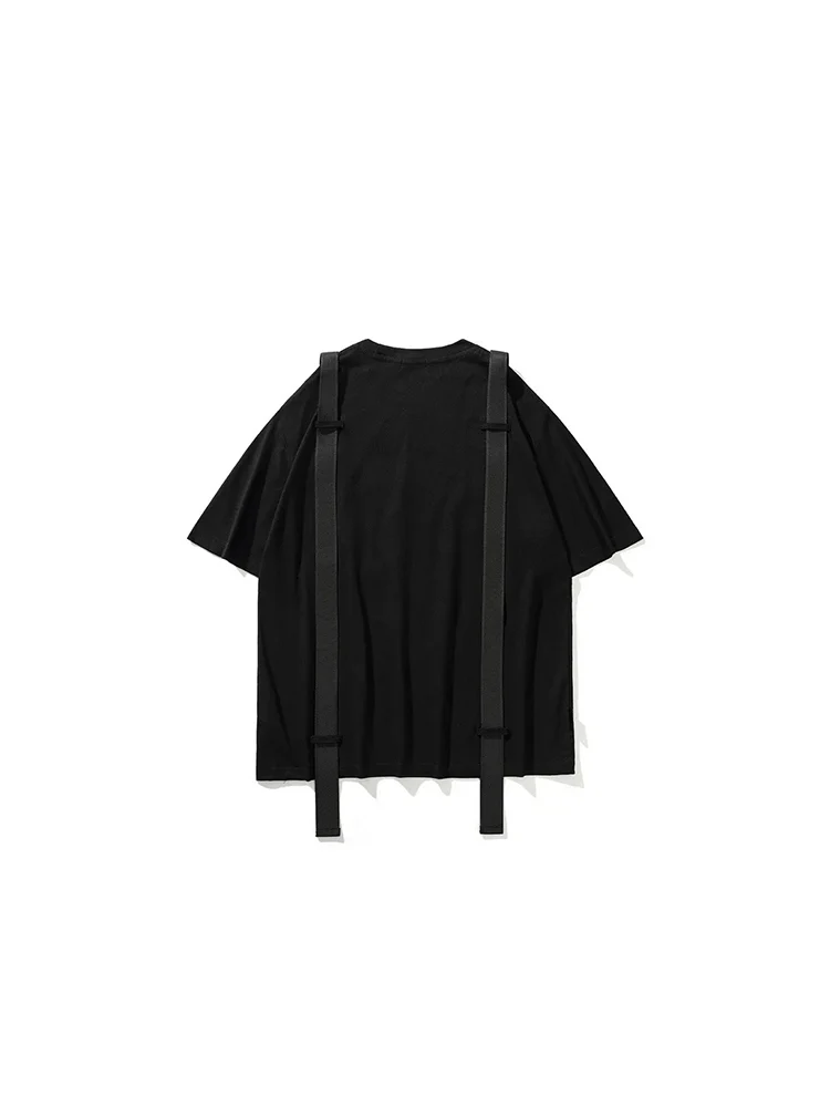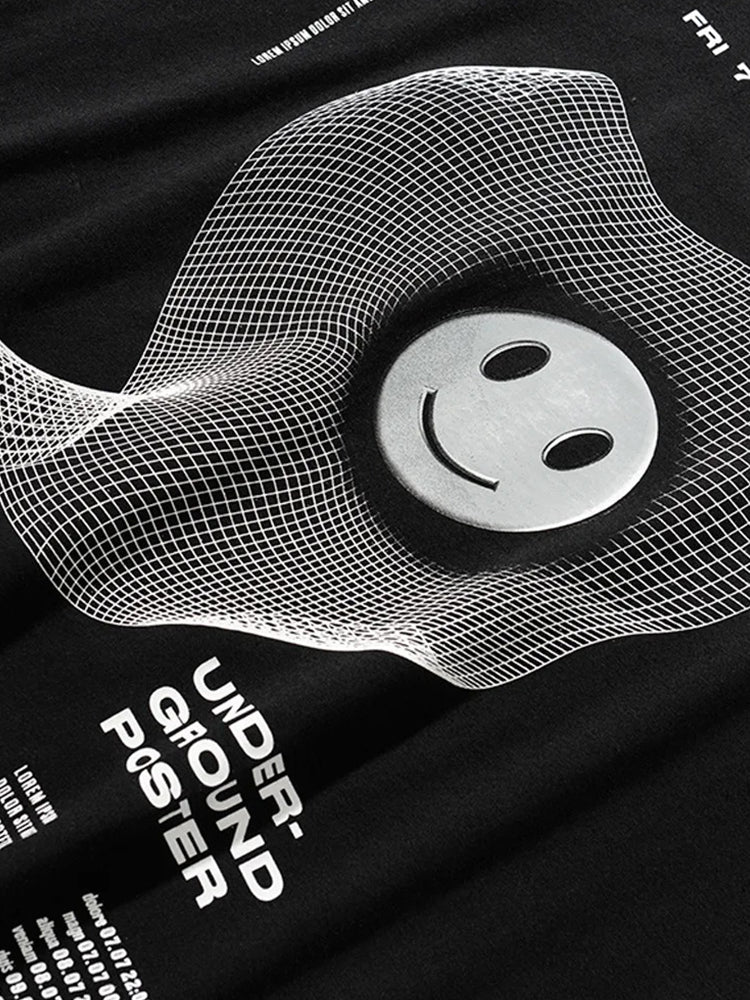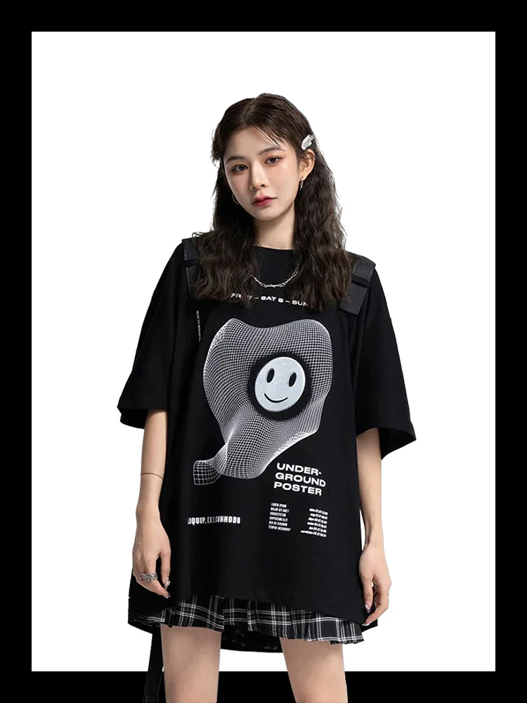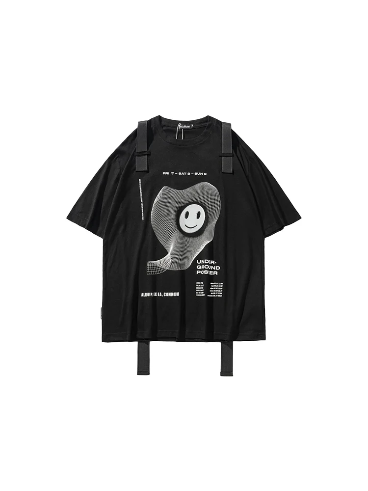 Le t shirt streetwear femme se distingue par son design avec un smiley blanc combiné à un design futuriste, il dispose de grand harnais qui partent de épaules jusqu’au bas du dos.