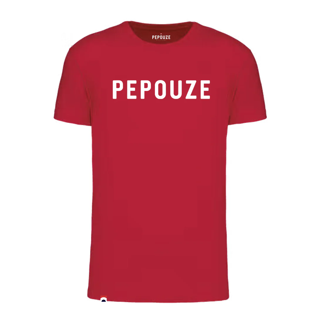 Ce tee-shirt rouge coupe droite (150g) avec son logo blanc en feutrine recyclée effet velours et sa petite étiquette tissée arc-en-ciel bleu, blanc, rouge est LE best-seller de la collection 2024 / 2025. Il est disponible également de différentes couleurs !