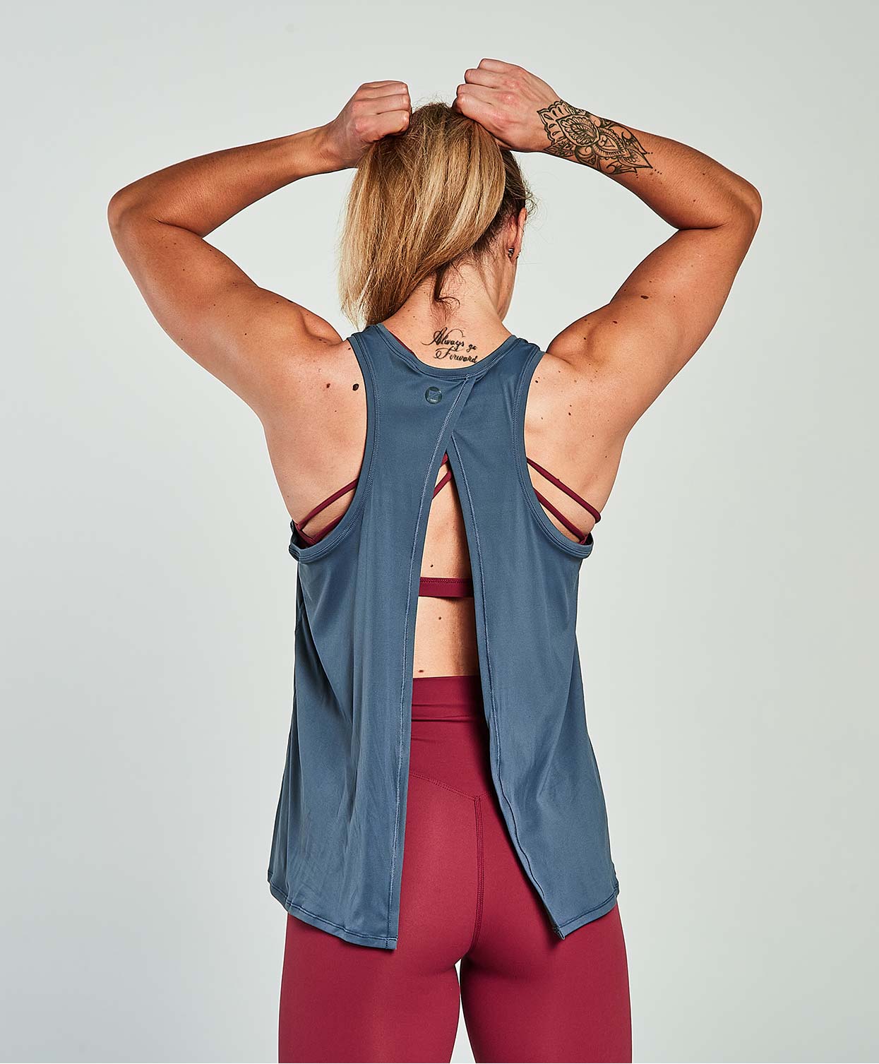 Portez le débardeur BREATHE de deux façons, selon votre humeur : profitez de sa coupe ample ou bien nouez-le au dos et sentez vous d’attaque pour un WOD cardio… Doux pour la peau et tellement léger…