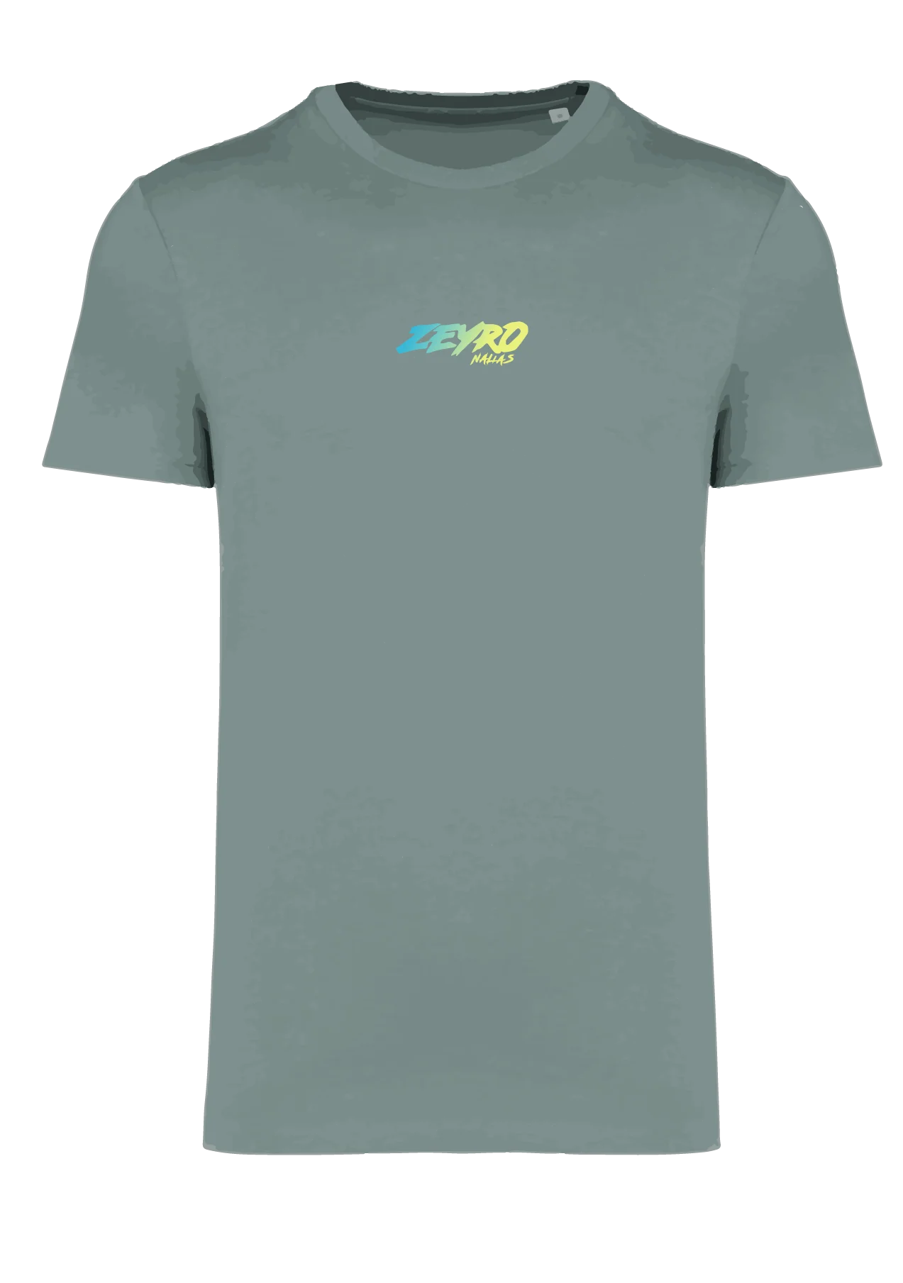 Tee shirt Basic ZEYRO Couleurs : ANTIQUE/SUNSET – JADE/LAGOON – NOIR/LAGOON – NOIR/BLANC Coupe : T-shirt unisexe – Coupe ajustée. Coutures latérales Matière : 100% coton biologique. Coton peigné Entretien : Lavage sur l’envers à 30°C maximum recommandé. Séchage à l’air libre. Ne pas repasser l’impression.