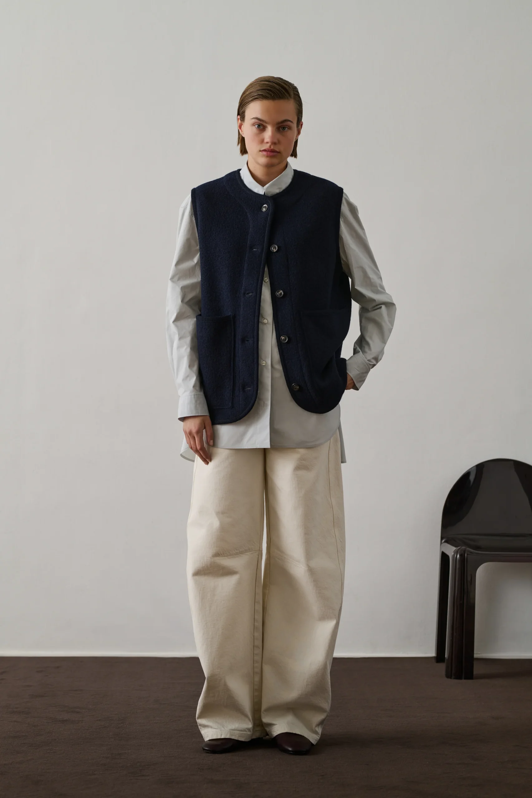 CHICAGO est un blouson sans manches en laine bouillie. Ce lainage chaud assure une isolation optimale tout en étant agréable au toucher. Il est pensé comme un gilet à styliser à l’infini. À glisser sous un manteau sans contraindre le mouvement, ou à superposer à un simple pull. Déclinée de notre veste iconique OLYMPE, on retrouve les mêmes codes de veste autrichienne, aux finitions tressées.