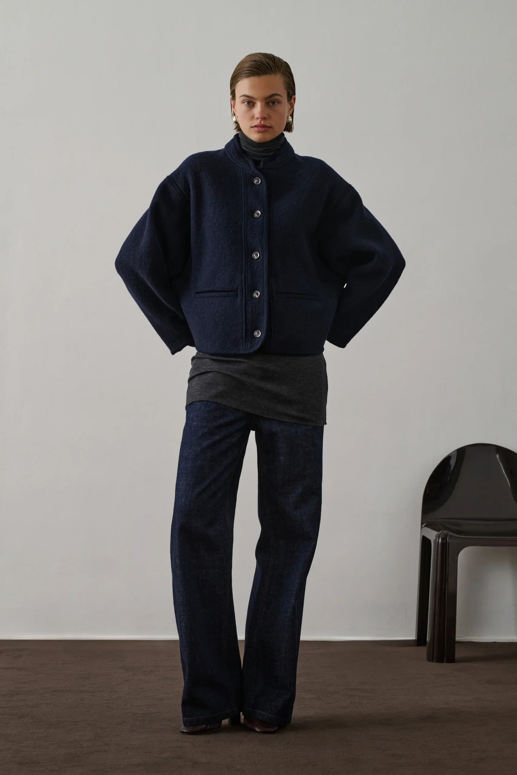 – Veste courte au volume ample et rond