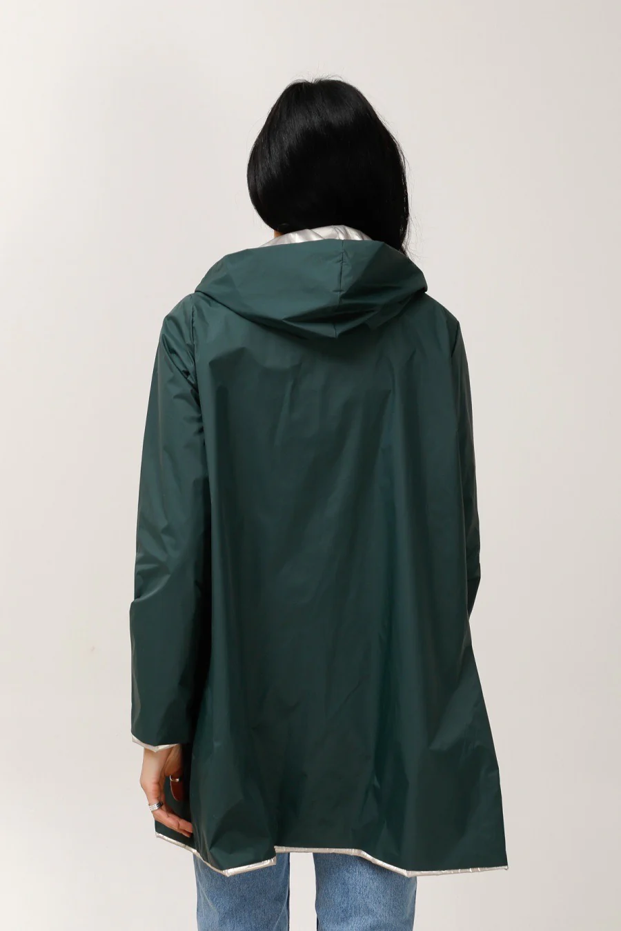Sa coupe longue apporte une allure chic et protège davantage par temps incertain. Elle s’associe aussi bien à un jean, un pantalon fluide ou une robe. Le mannequin porte une taille unique, généralement adaptée du 34 au 44 selon la morphologie. Pour un rendu ajusté, optez pour une taille en dessous.